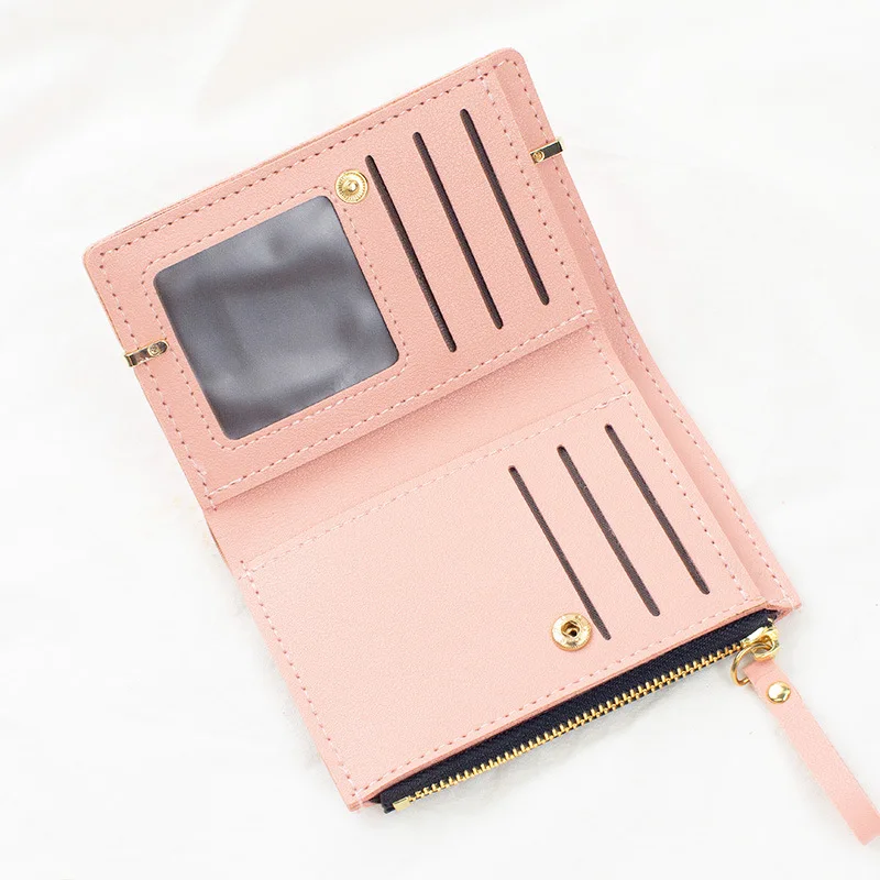 Женские кошельки, кожаный женский кошелек, мини-кошелек с застежкой, однотонный держатель для нескольких карт, модные короткие кошельки для монет, тонкий маленький кошелек на молнии