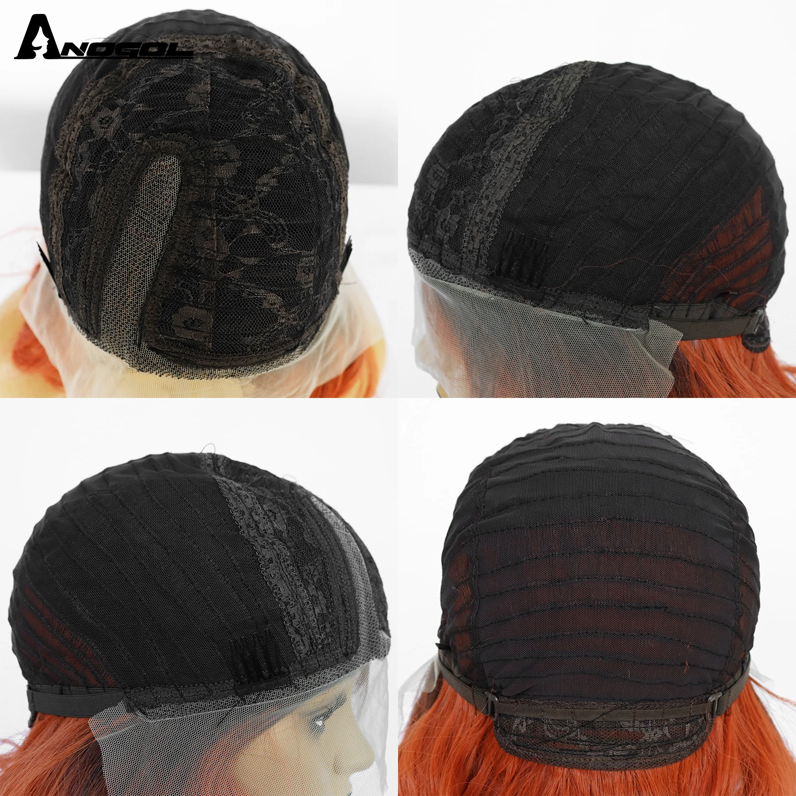 Парики из синтетических волос ANOGOL, красный, 14 дюймов, u-образный кружевной парик, черный цвет, окрашенные в галстук, цвет Омбре, красный Боб, короткий волнистый парик для женщин, Бразилия