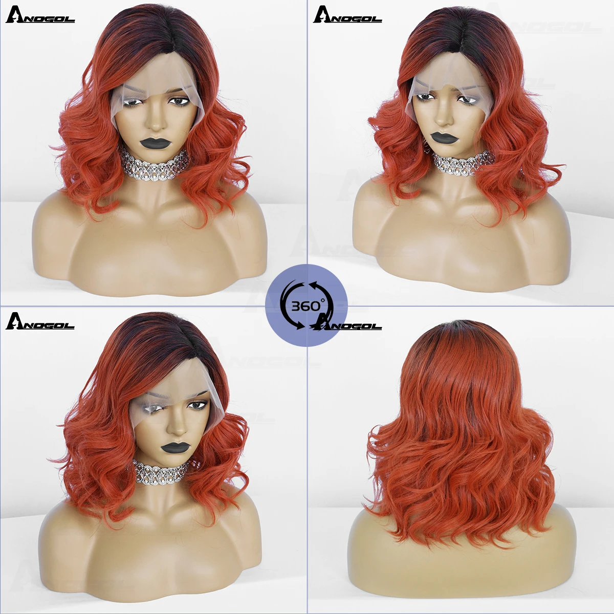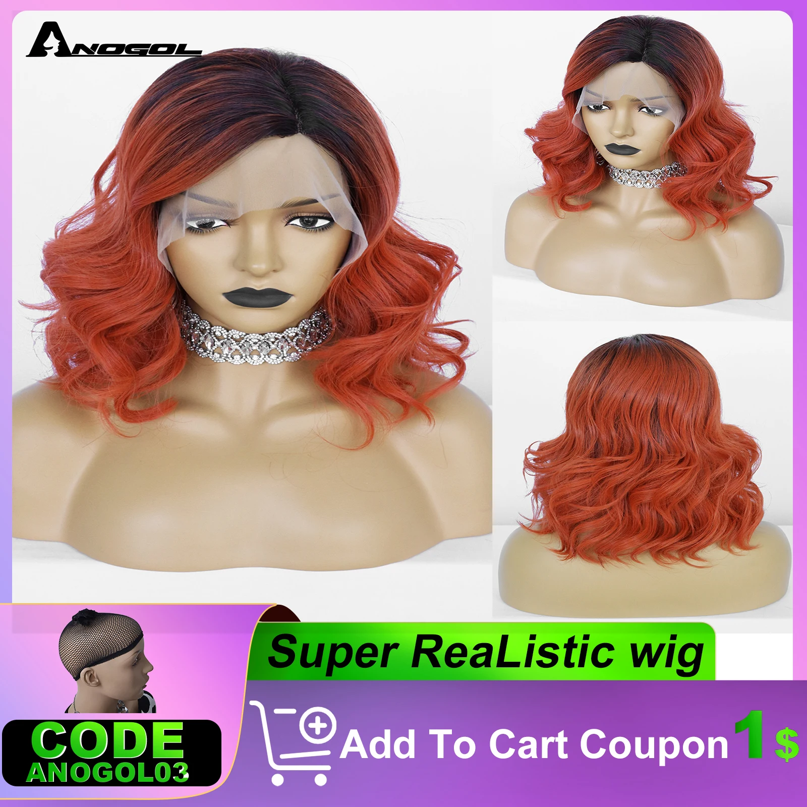 ANOGOL синтетические парики, 14 дюймов, парик с U-образной кружевной частью, подчеркивающий черный, окрашенный в завязку, Омбре, красные волосы, короткий волнистый парик для женщин, Бразилия