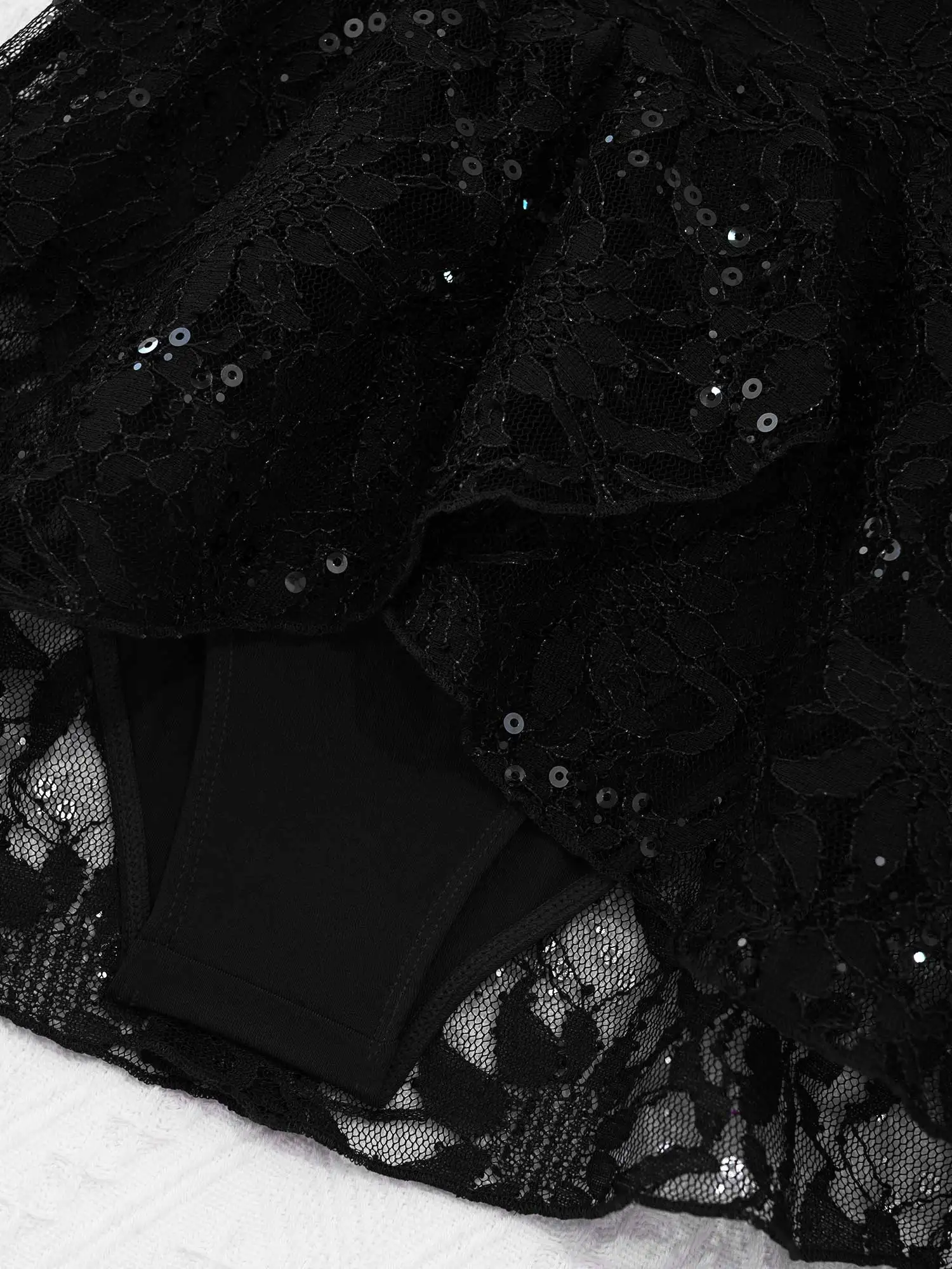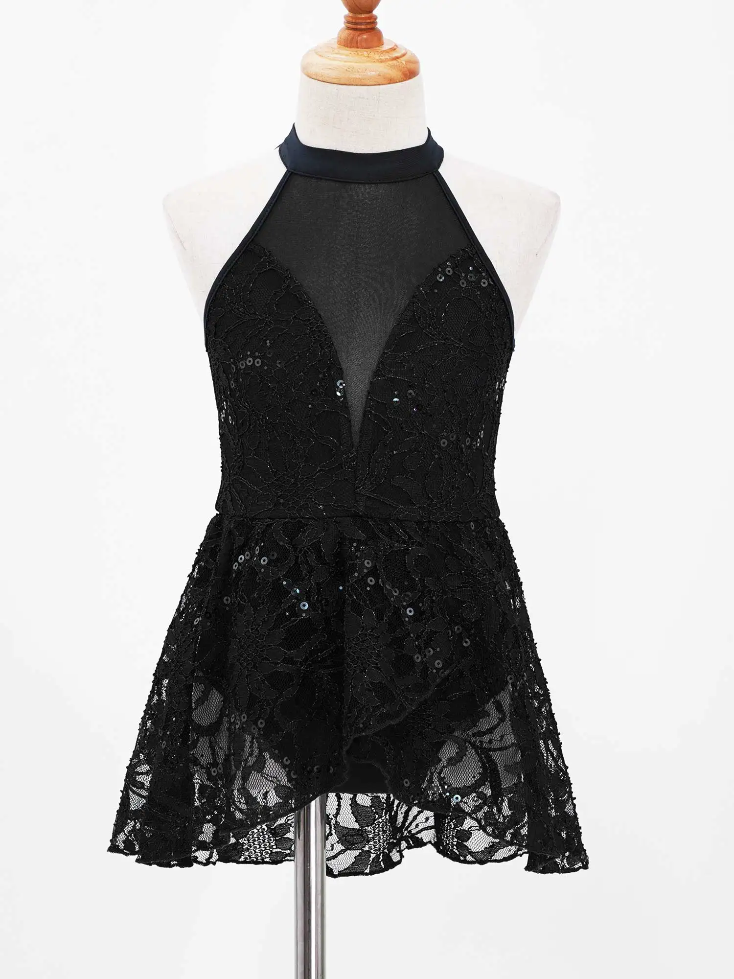 Детская Одежда для танцев для девочек; Одежда без рукавов с круглым вырезом и открытой спиной; Сетчатый лоскутный декор с пайетками; Трико; #6-14