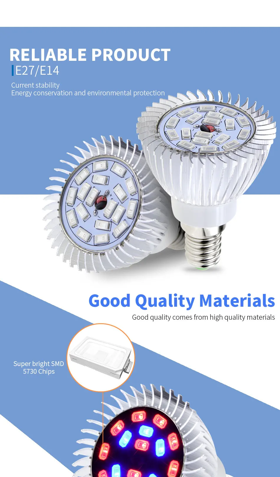 Добро пожаловать на покупку.Высококачественная алюминиевая лампа для роста растений.Гарантия 2 года!Если продукт не поврежден человеком, отправьте его обратно. Мы проверим и проверим, является ли он естественным повреждением. Наш продукт имеет двухлетнюю гарантию.Обзор продукта:Он может обеспечить весь светильник, который необходимо растению и цветку, чтобы помочь растению расти быстрее, увеличить урожайность.Это просто. Высокая производительность, низкое тепло и меньше электроэнергии.Дополнение солнечного света, особенно в зимние месяцы, когда часы дневного света короткие.Увеличьте длину «дня», чтобы вызвать специфический рост и цветение и помочь растениям быстрее вырасти, уменьшите круг роста.Тепло на ощупь-не будет сжигать растения. Нет необходимости в системах охлаждения высокой мощности, экономия энергии 50%-80%. Спецификация:2018 новейший 100% абсолютно новый Epistar 18 SMD5730 светодиодный растительный Точечный светильник.Особенности: Увеличение выхода и уменьшение круга роста.Для: гидропоника овощей, трав и цветущих растений.Материал: алюминийВходное напряжение: 85 В-265 В переменного токаМощность: 18 ВтСветодиодный чип: SMD5730Тип цоколя: E27 / E14Количество светодиодов: 18 светодиодовУгол луча: 180 градусовЭффективность отражателя: 95%Светильник источник: высокая Мощность светодиодный SMD5730Температура тела: <60CСветодиодный температурный режим работы: <65CСрок службы:> 50000 часовСветильник: красный и синийДлина волны: Красный 660нм; Синий 554нм