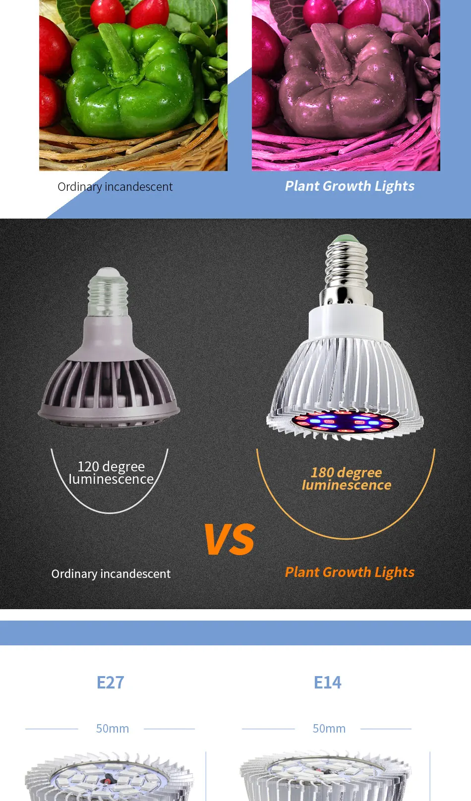 Светодиодное освещение для теплиц, 18 Вт, E27 светодиодный светодио...