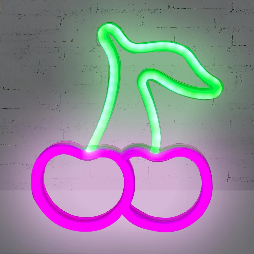 Cherry Fruits Shape LED Neon Light Colorful Rainbow Neon Sign Wall Hanging Night Lamp for Home Party Holiday Wedding Festival Decorations