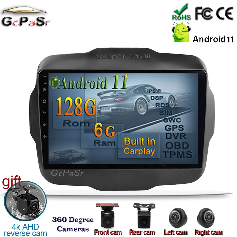 Автомагнитола на Android 11 для Jeep Renegade, мультимедийный видеоплеер с GPS-навигацией и Android 2014, 2016, 2017, 2018
