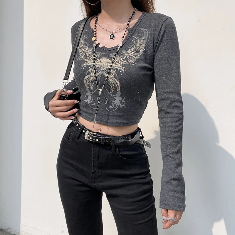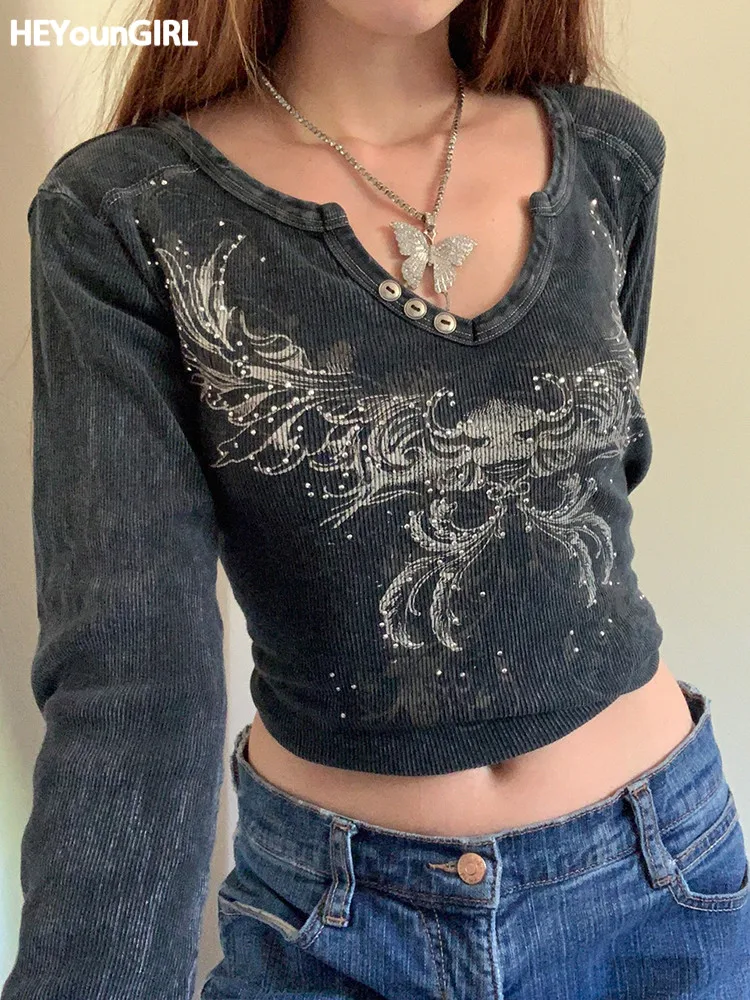 Кроп-топ Y2K женский с графическим принтом, винтажный Приталенный т...
