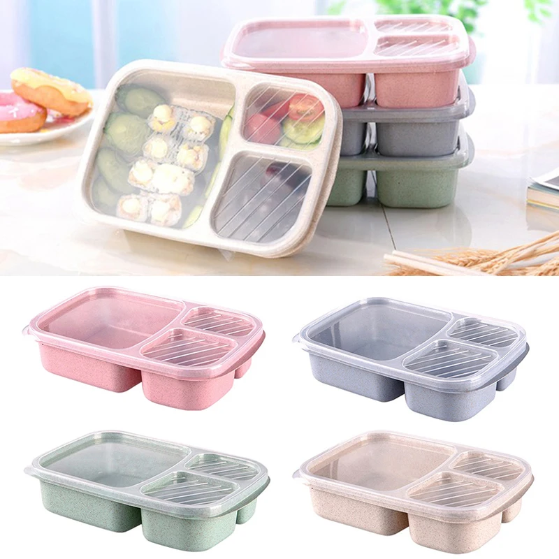 Портативный Ланч-бокс с 3 ячейками, Ланч-бокс из бэнто, пшеничной с...
