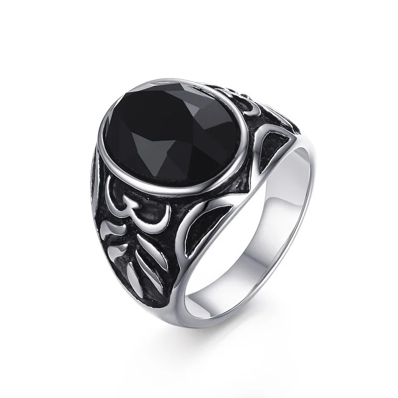 Классическое кольцо с черным овальным камнем для мужчин, ювелирные ...