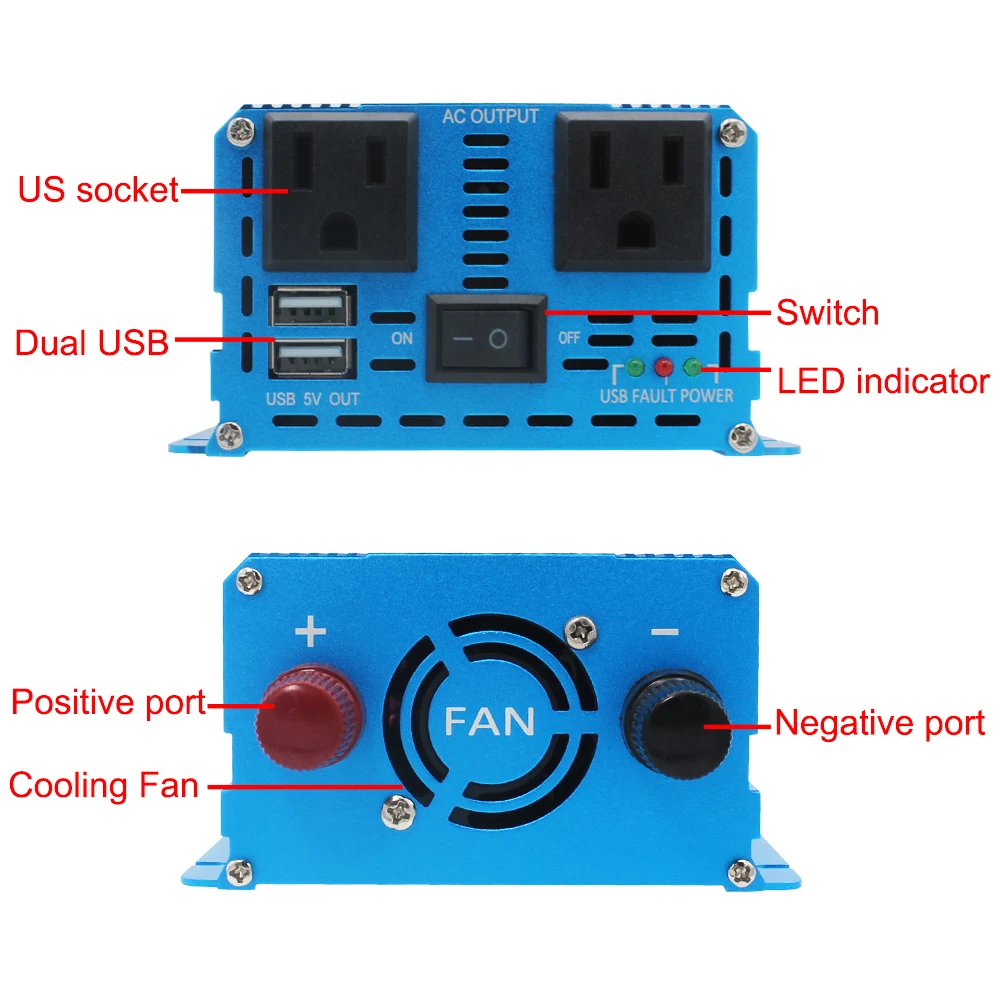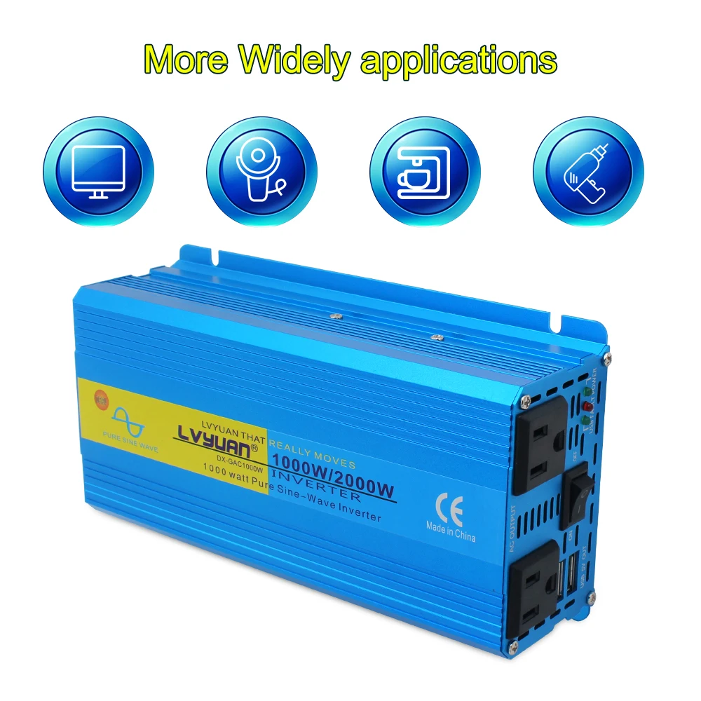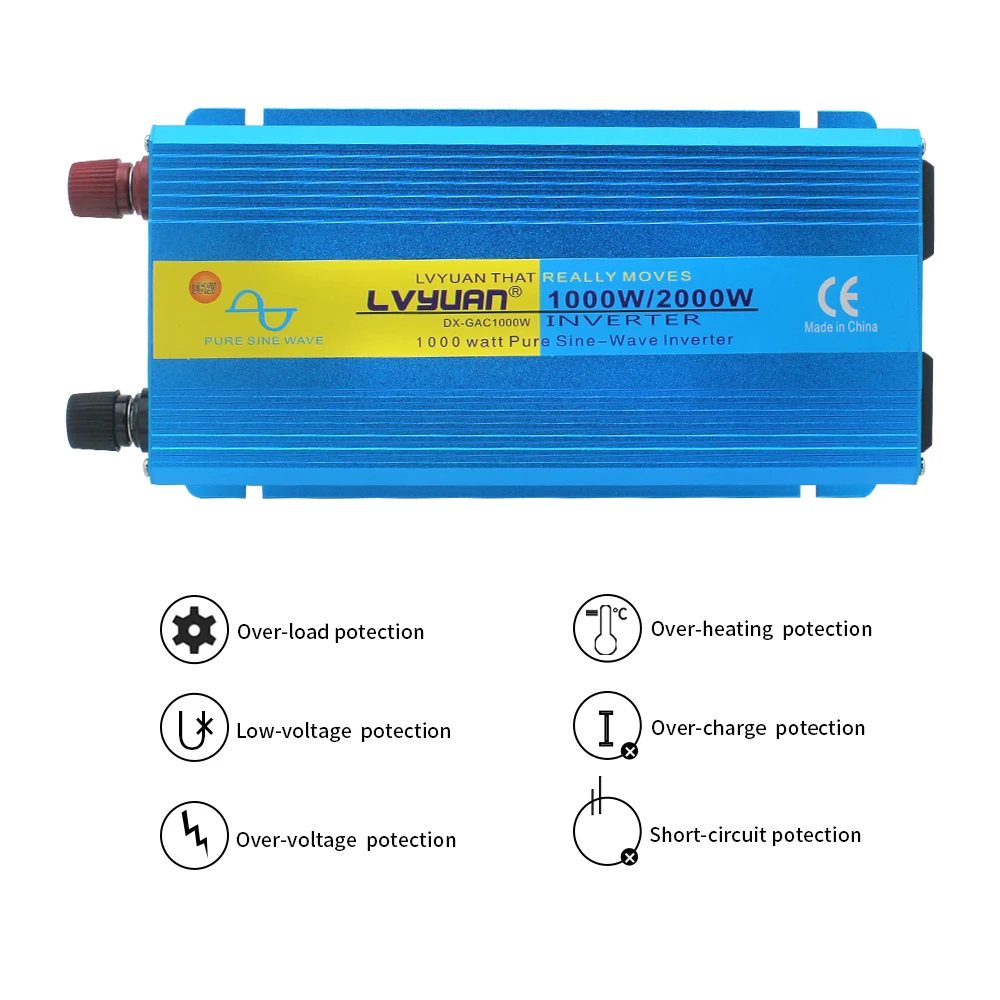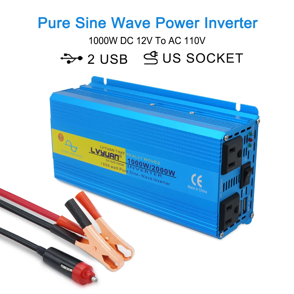 2000 Вт пиковый инвертор немодулированного синусоидального сигнала, американская розетка, 12 В24 В постоянного тока в 100 В переменного тока, 110 В, 50 Гц60 Гц, преобразователь солнечной энергии, автомобильный прикуриватель