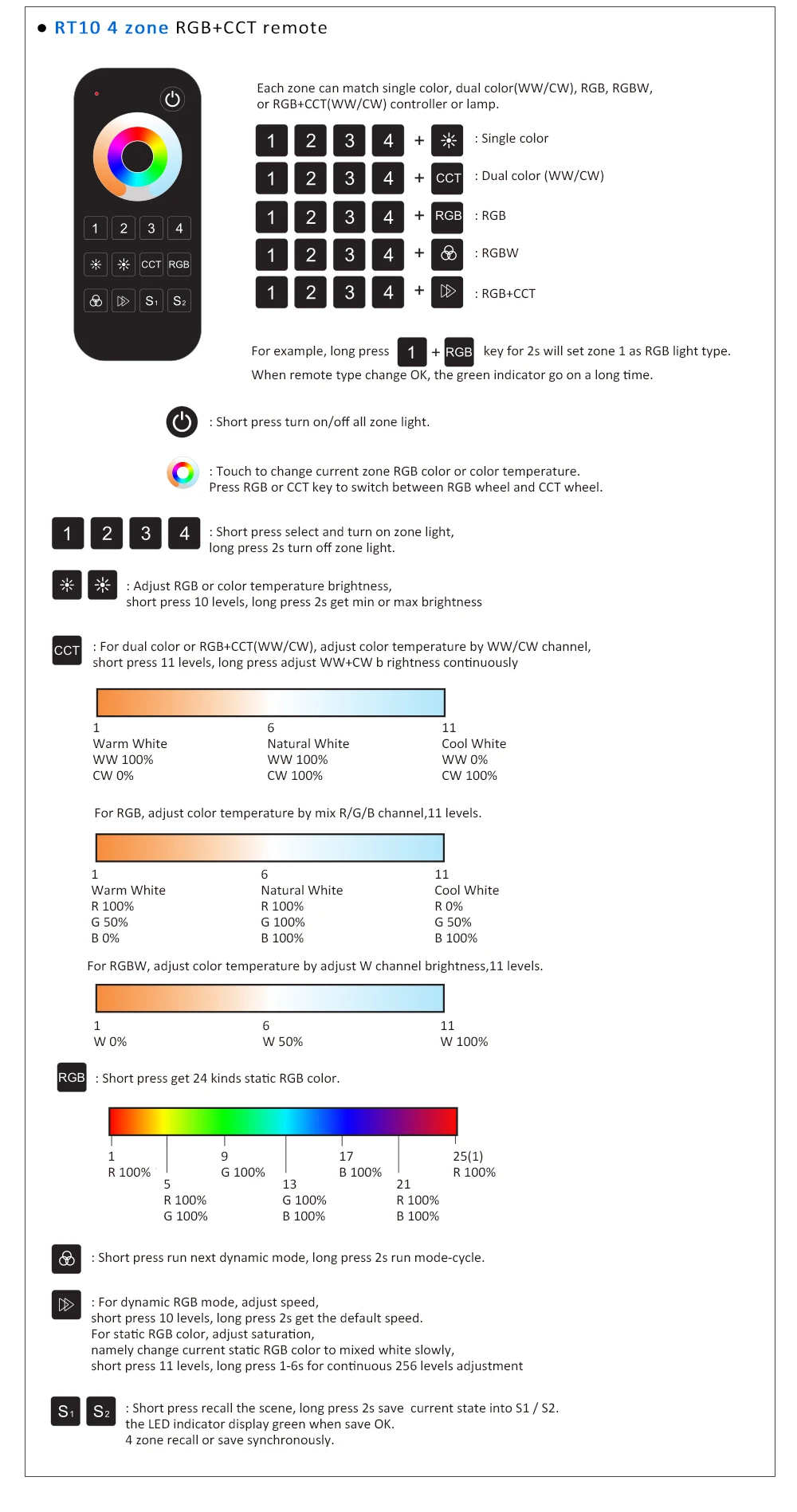 ● К RGB + CCT светодиодный контроллер● Рабочее напряжение 3VDC(AAAx2)● Удаленное Расстояние 30 м (безбарьерное пространство)● Батарея в комплект не входит