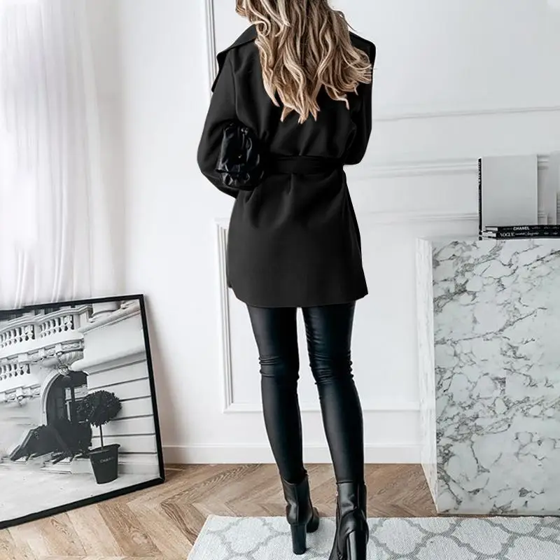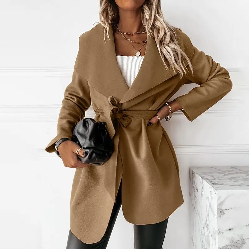 Номер моделиFemale Leisure Bandage Solid Color Woollen Coat