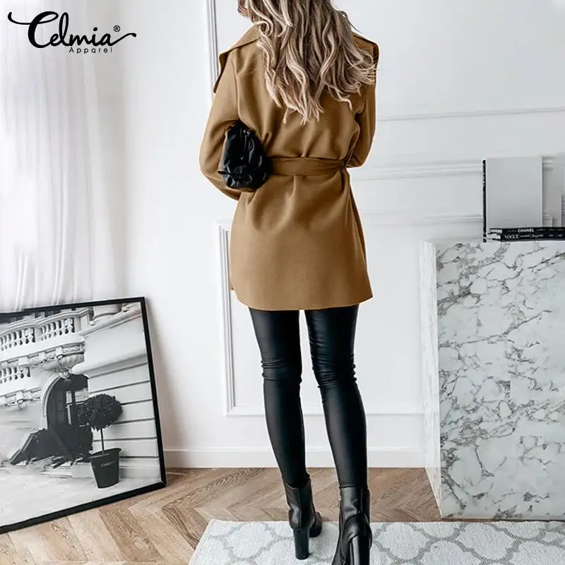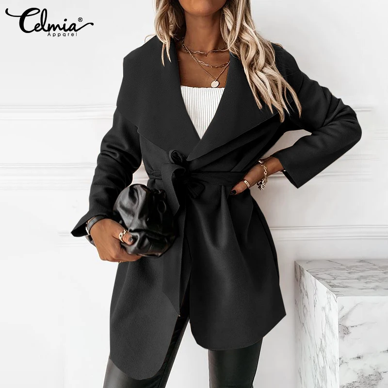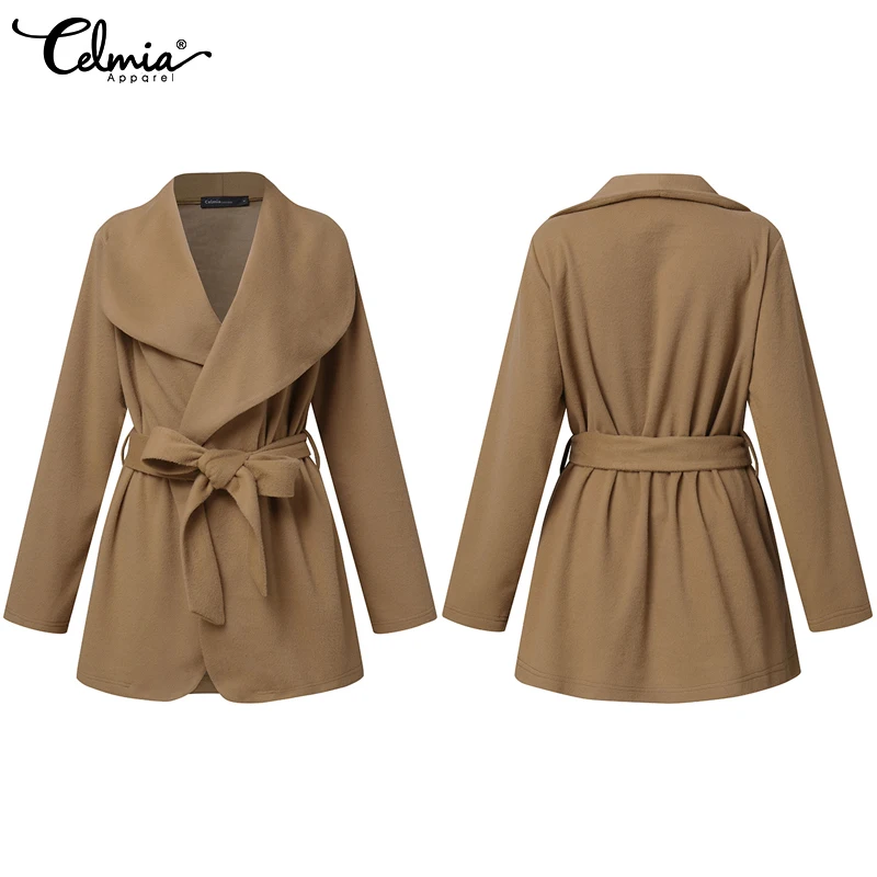 Пальто женское Шерстяное с отложным воротником и поясом, с длинным рукавом, зима 2021