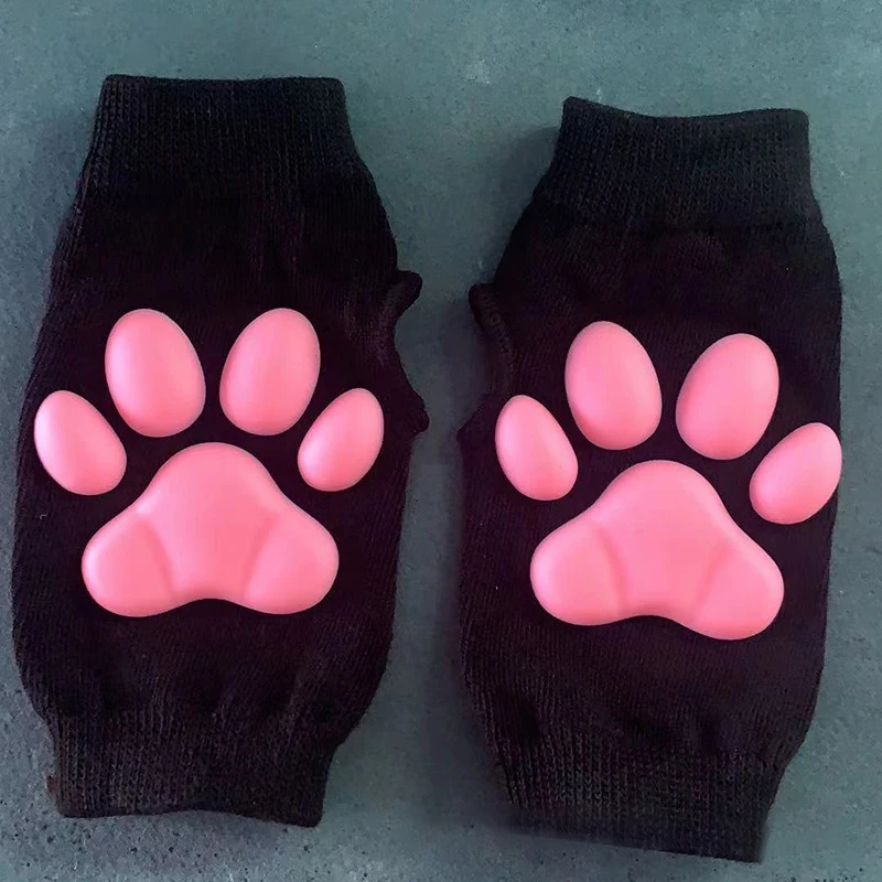 Милые носки выше колена с кошачьими лапками, 3D Силиконовые перчатки с кошачьими лапками, женские чулки до бедра для косплея для девочек, ночные клубы, Вечеринки На Хэллоуин