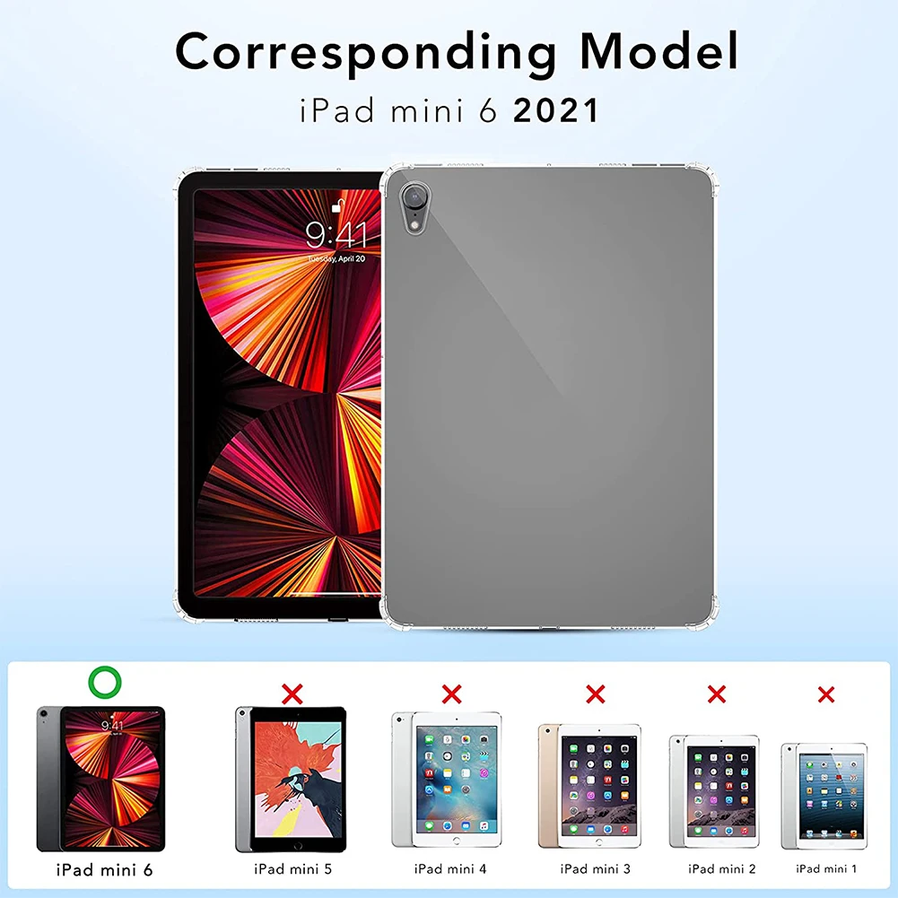 Чехол для iPad Mini 6, новый выпуск 2021 года, Прозрачный ударопрочный защитный чехол из ТПУ для планшета iPad Mini 6-го поколения, 8,3 дюйма