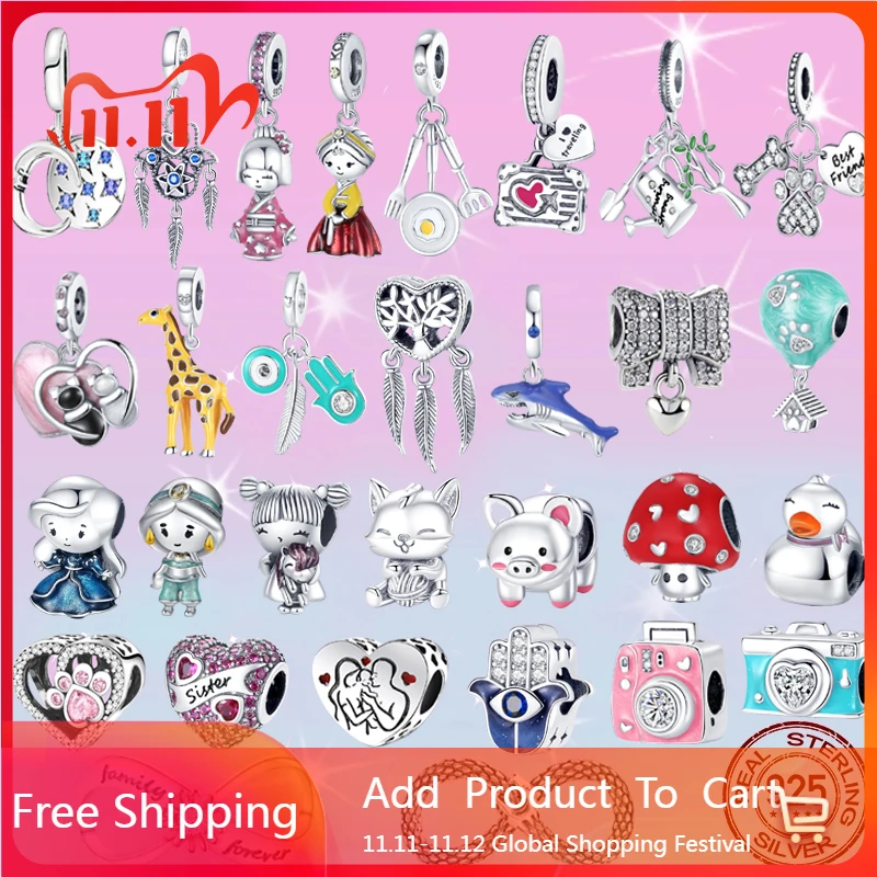 Купите 3 + товаров, Сэкономьте 5%Новинка 2021, Стерлинговое Серебро, 925 бусины, подвески, розовая свинка, Акула, любовь, серия, бусины, подходят для Pandora, 925, оригинальный браслет для женщин, ювелирные изделия
