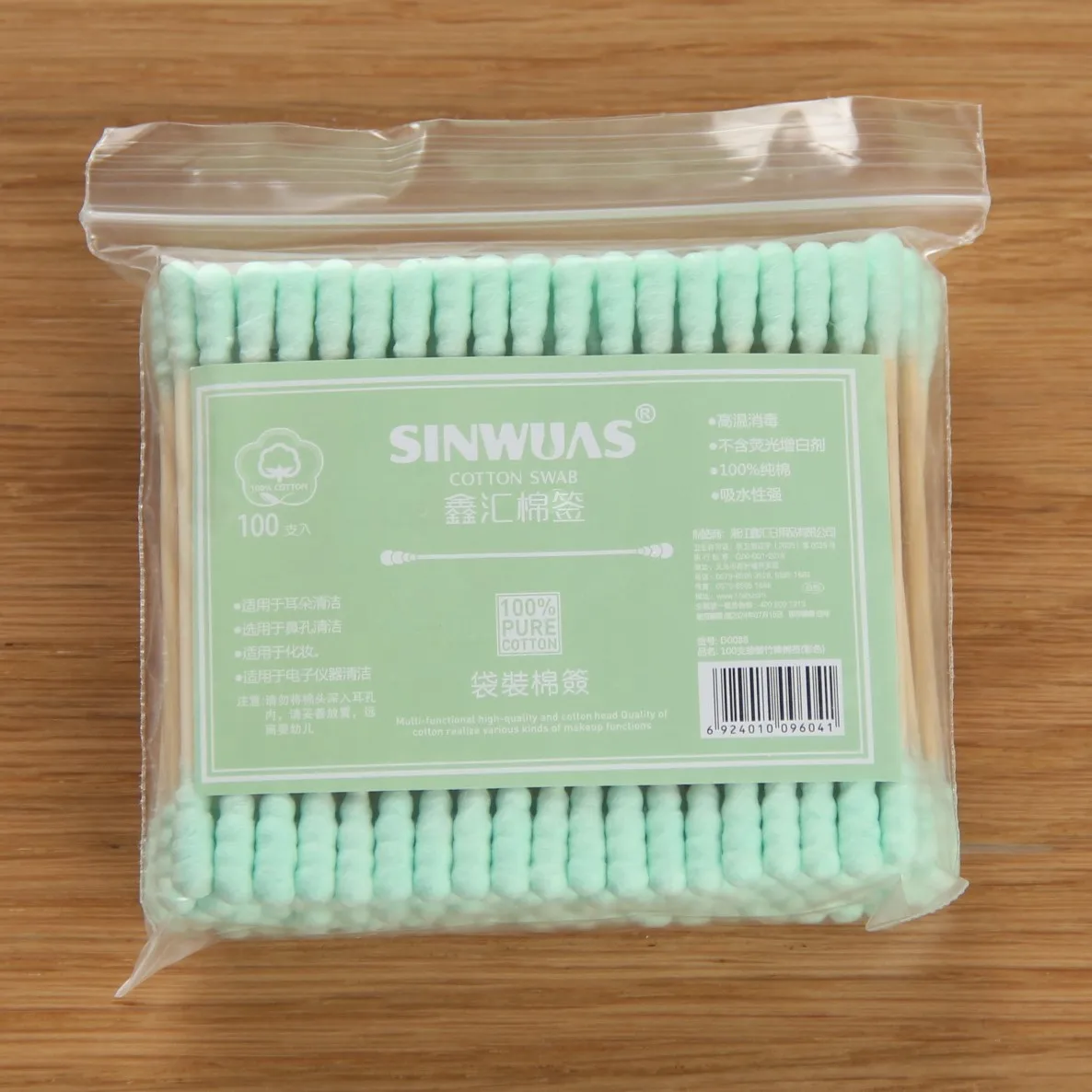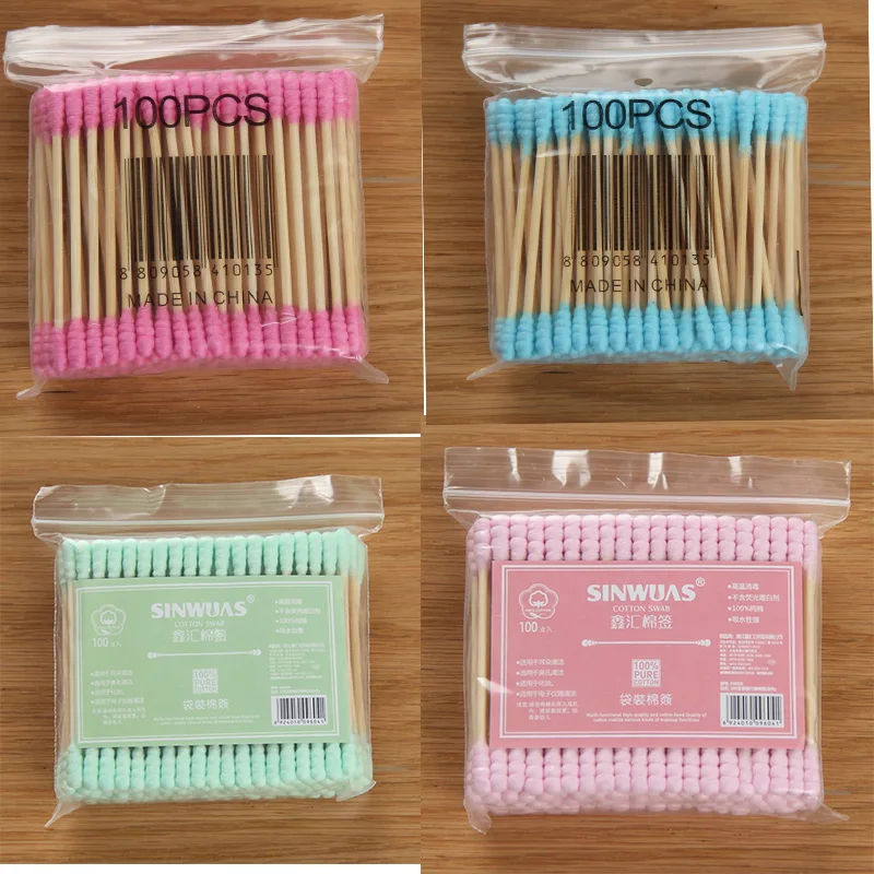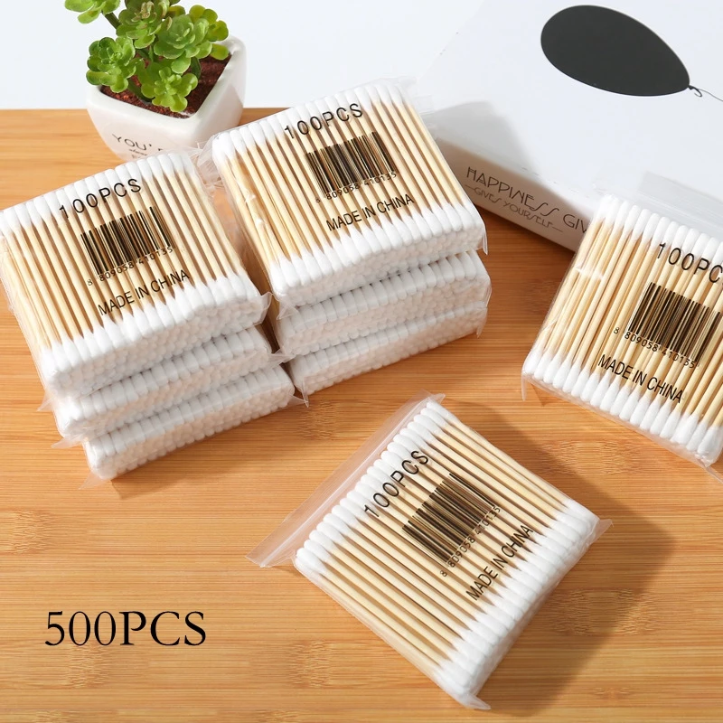 Деревянные ватные палочки с двойной головкой для женщин, макияж, ватные палочки, наконечники для деревянных палочек, для очистки носа и ушей, инструменты для ухода за ребенком
