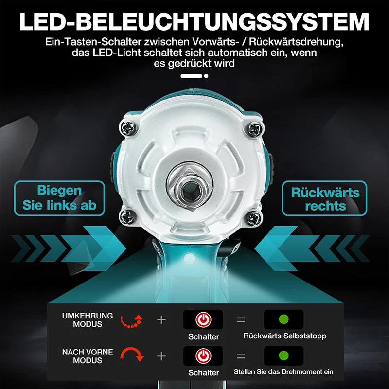 Бесщеточный Электрический ударный гайковерт BLMIATKO, 12 дюйма, торцевой гайковерт, электроинструменты, Перезаряжаемый для батареи Makita 18 в