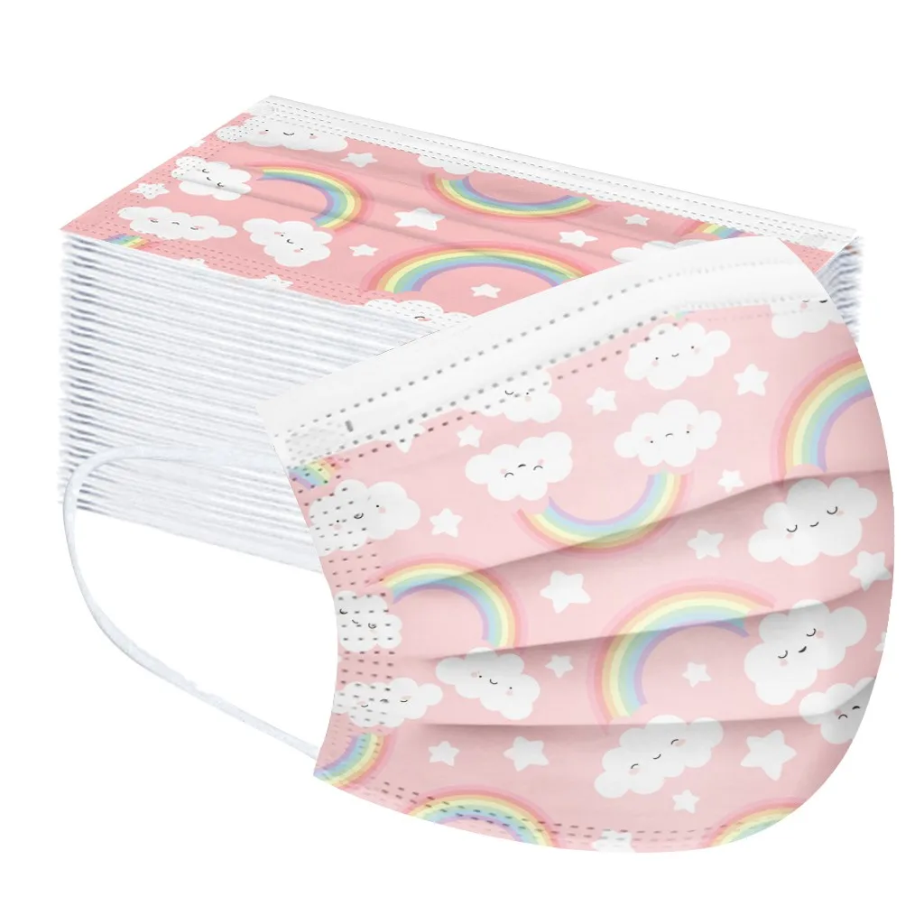 Маска одноразовая детская с радужным принтом, милая детская маска с петлями для ушей, фильтры 3 слоя, розовые маски для косплея на Хэллоуин, 50 шт.