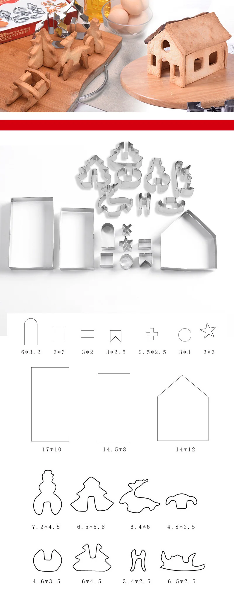 18 шт., форма из нержавеющей стали, Рождественский пряничный домик,...