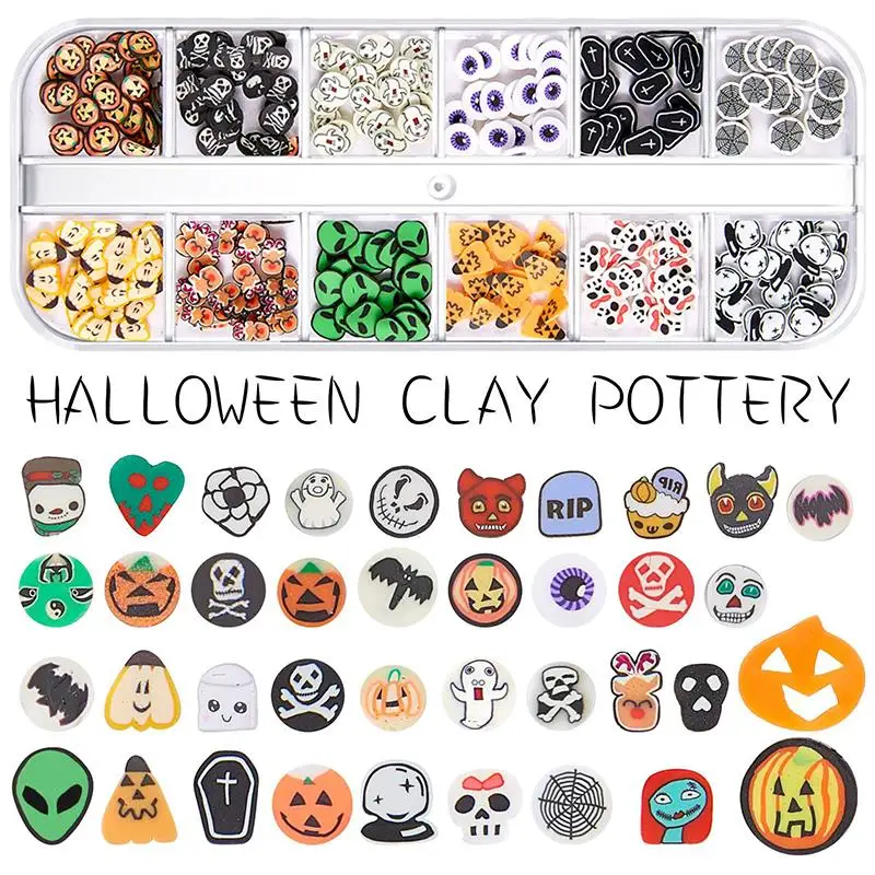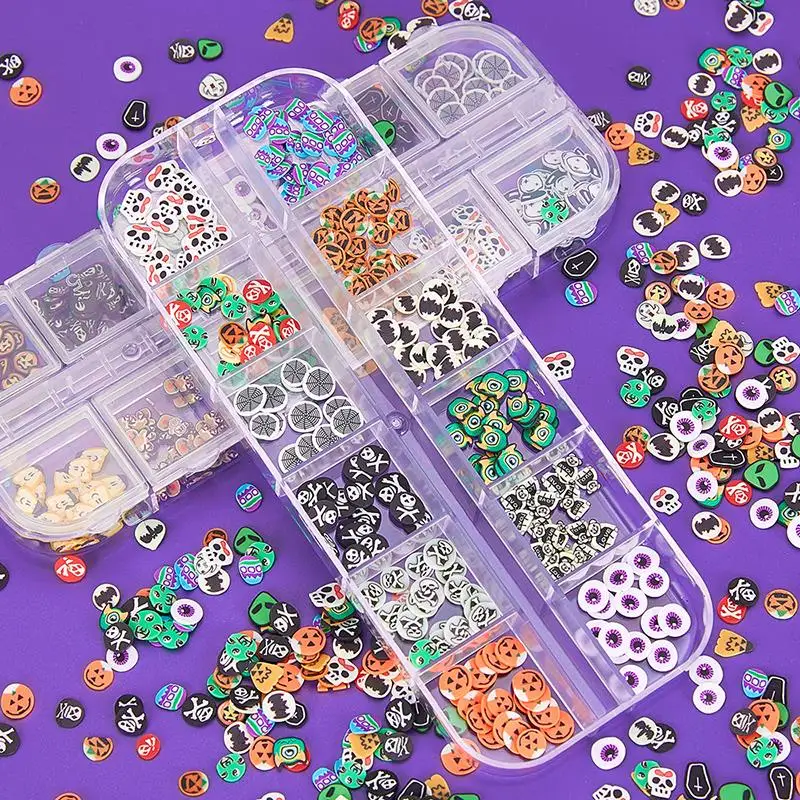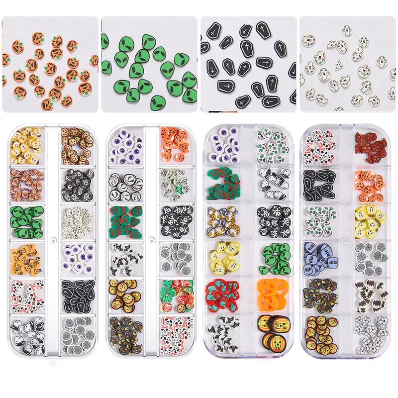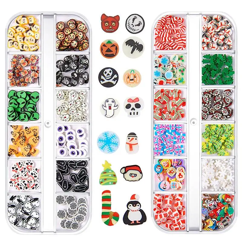 12 сеткикоробка полимерная глина-смола наполнение Хэллоуин Рождественские украшения из глины смешанный наполнитель для DIY эпоксидная смола, форма украшения для ногтей