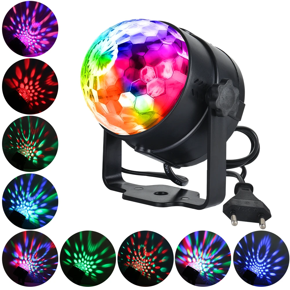 RGB диско-шар, освещение для вечерние, вращающийся шар со звуковой активацией, Освещение DJ, светодиодный проектор, Стробоскопическая Лампа вечерние ринки, клуба, бара, Рождества, сценическое освещение