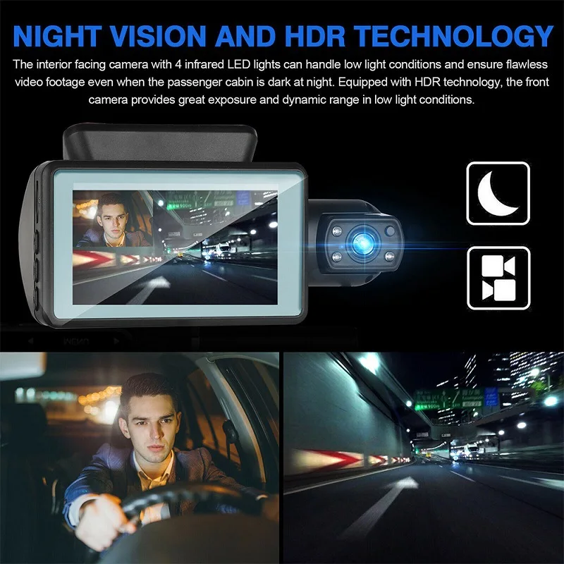 Автомобильный регистратор 3-дюймовый IPS экран DVR камера ночного видения широкоугольный передний и задний двойной объектив скрытый мониторинг парковки