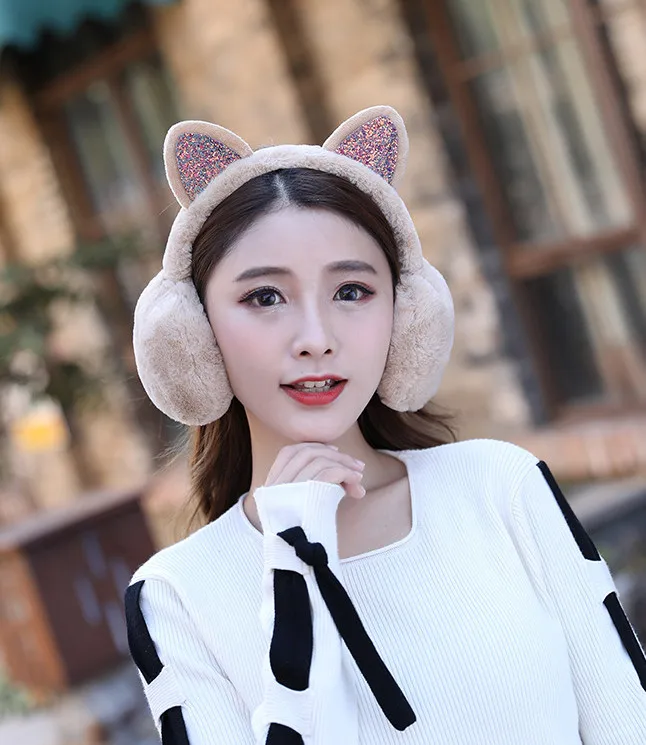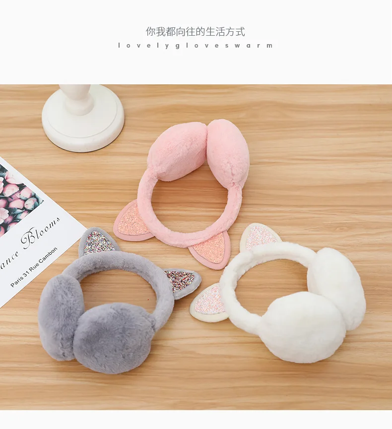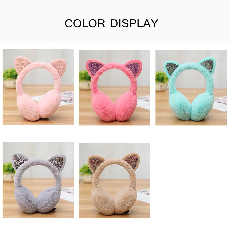 Модные плюшевые наушники в виде кошачьих ушей, 1 шт., блестящие мягкие наушники с блестками, повязка на голову для детей, мальчиков и девочек, винтажная Ушная шапка унисекс, зимняя уличная