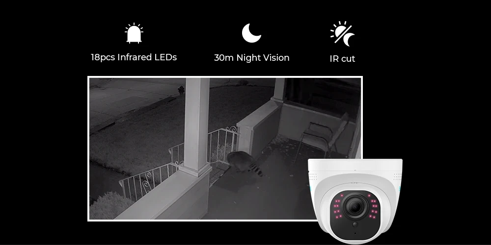 Инфракрасные светодиоды 18шт. И усовершенствованная ИК-технология делают Reolink RLC-520 отличной камерой безопасности ночного видения, позволяя вам видеть любое событие четко даже в темноте. Обладая длинным ночным видением на расстоянии до 100 футов, вы можете точно идентифицировать людей, присутствующих в этом событии, с помощью видео, снятых камерой видеонаблюдения RLC-520.