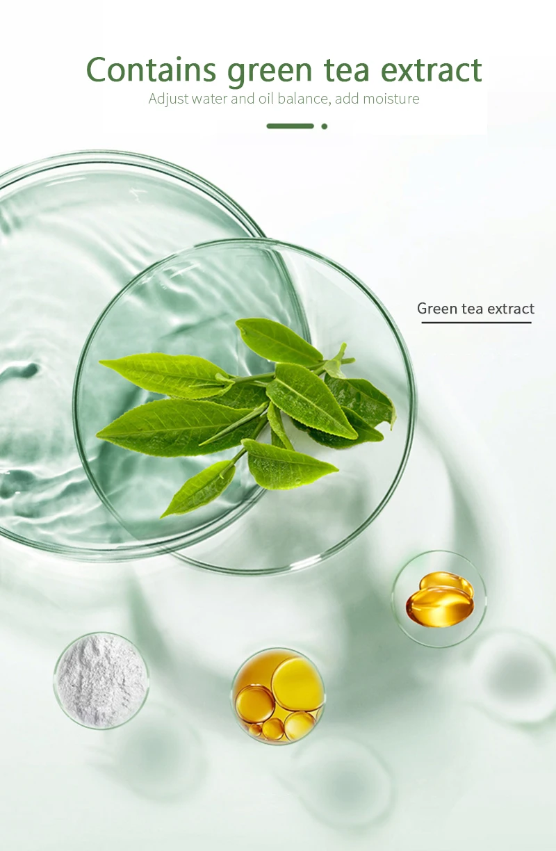 Твердая Очищающая маска зеленого чая содержит экстракт зеленого чая, который может эффективно очищать поры кожи, глубоко очищает кожу от загрязнений, регулирует водный и масляный баланс кожи, восполняет влагу в коже, И питают кожу.