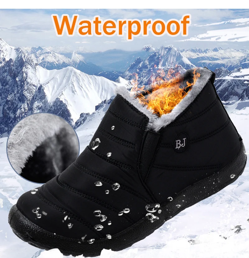 Мужские зимние ботинки унисекс, ботильоны для пар, мужские зимние ботинки, однотонная плюшевая нескользящая подошва, водонепроницаемая защитная обувь для мужчин