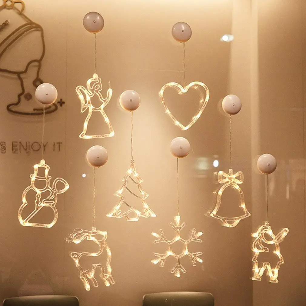 2021 рождественское окно Светодиодная лампа на присоске Рождественский колокольчик Снеговик Звездные огни Рождественские украшения праздничные новогодние вечерние украшения для дома