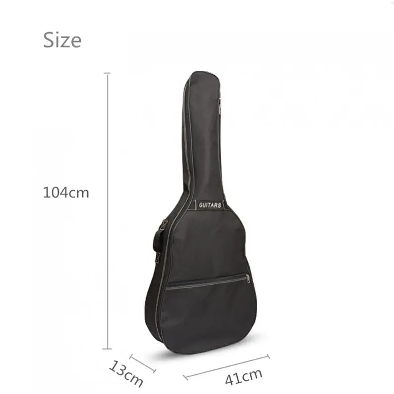 Особенности:-Регулируемые двойные плечевые ремни и удобная в переноске ручка.-Толстые металлические головки на молнии не подвержены коррозии.-Подходит для путешествий, активного отдыха и тренировок.-Легкий портативный и легко носить с собой.-Ударопрочный, защищающий вашу гитару от ударов и царапин.-Подходит для акустической фольклорной гитары 40-41 дюйма.-С внешним карманом для хранения других аксессуаров, таких как тюнер, струны, ремешок для укулеле и т. д.