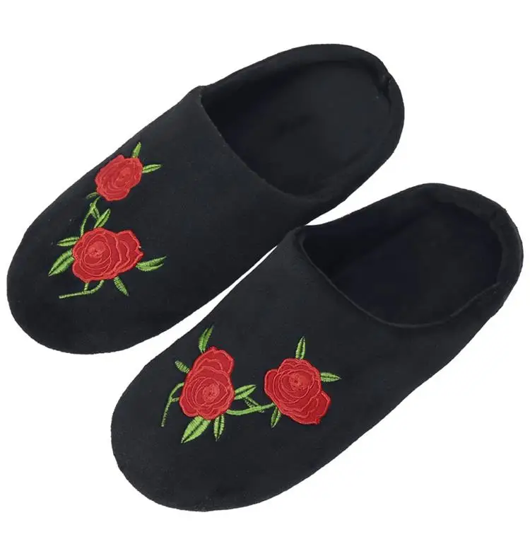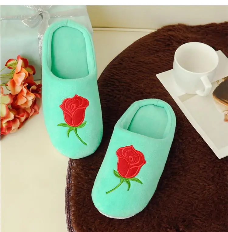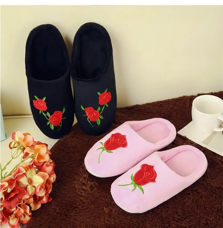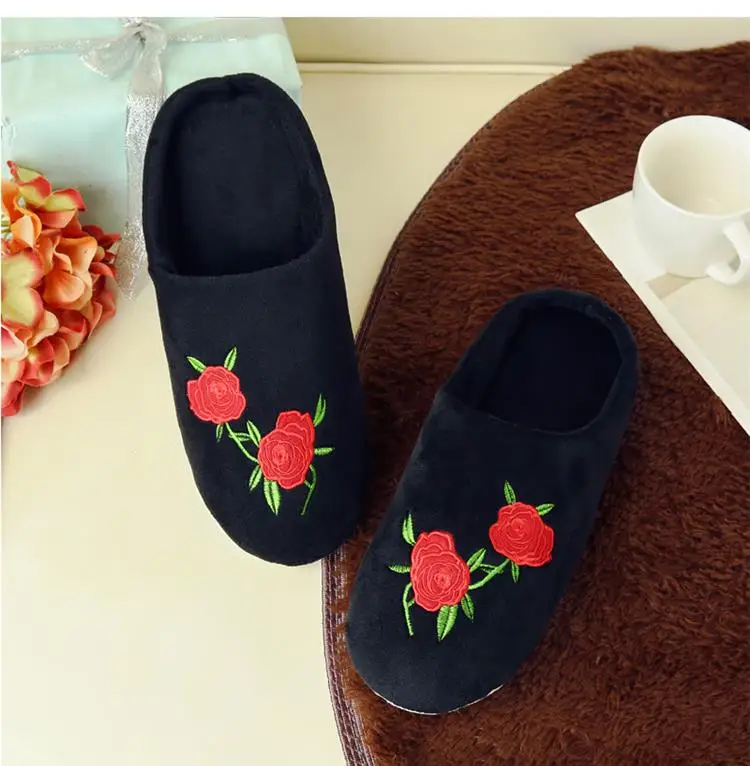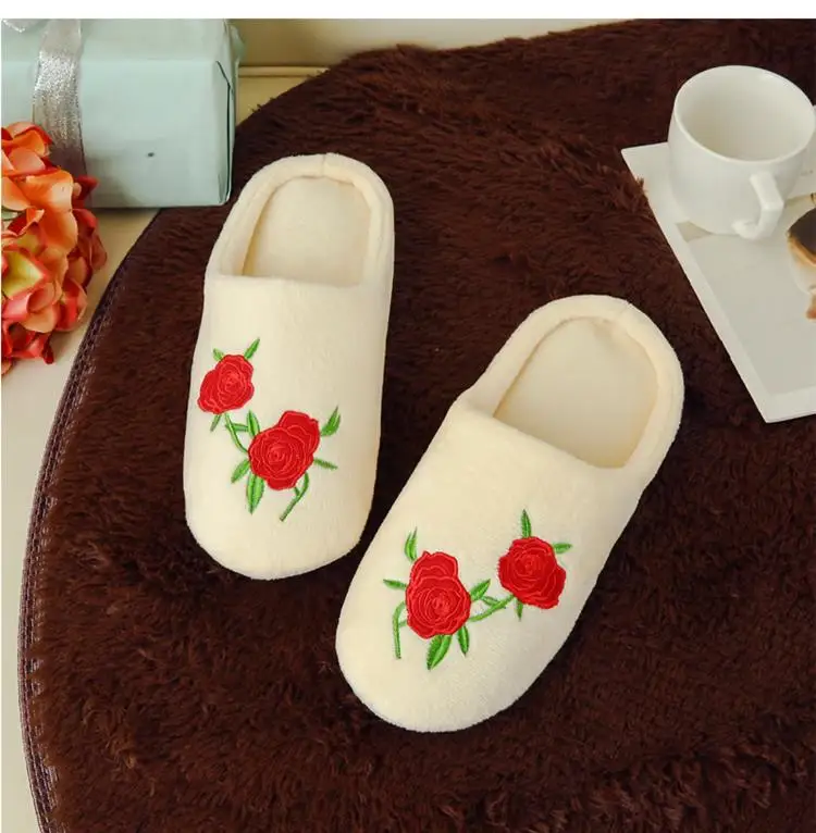 Тапочки женскиемужские зимние плюшевые, мягкие хлопковые тапочки, сланцы, Цветочная вышивка, для дома, унисекс