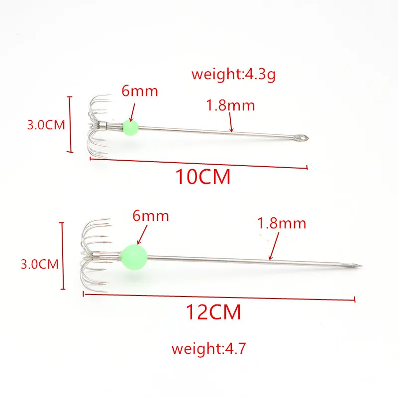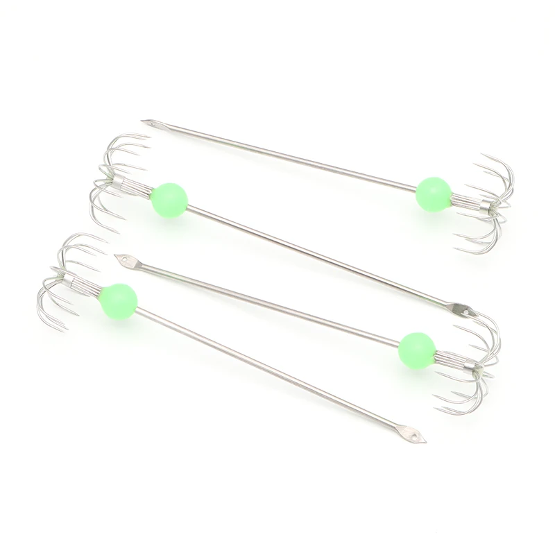 YJBYYX 5 шт.лот длинный 12 см Крючок для морской рыбалки кальмар светящиеся бусины искушение рыболовный крючок для лодки Рыбалка Осьминог рыболовное снаряжение
