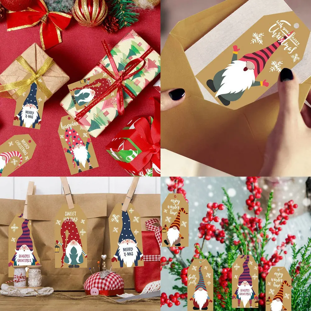 100 шт. рождественские этикетки Дед Мороз, карточка из крафт-бумаги...
