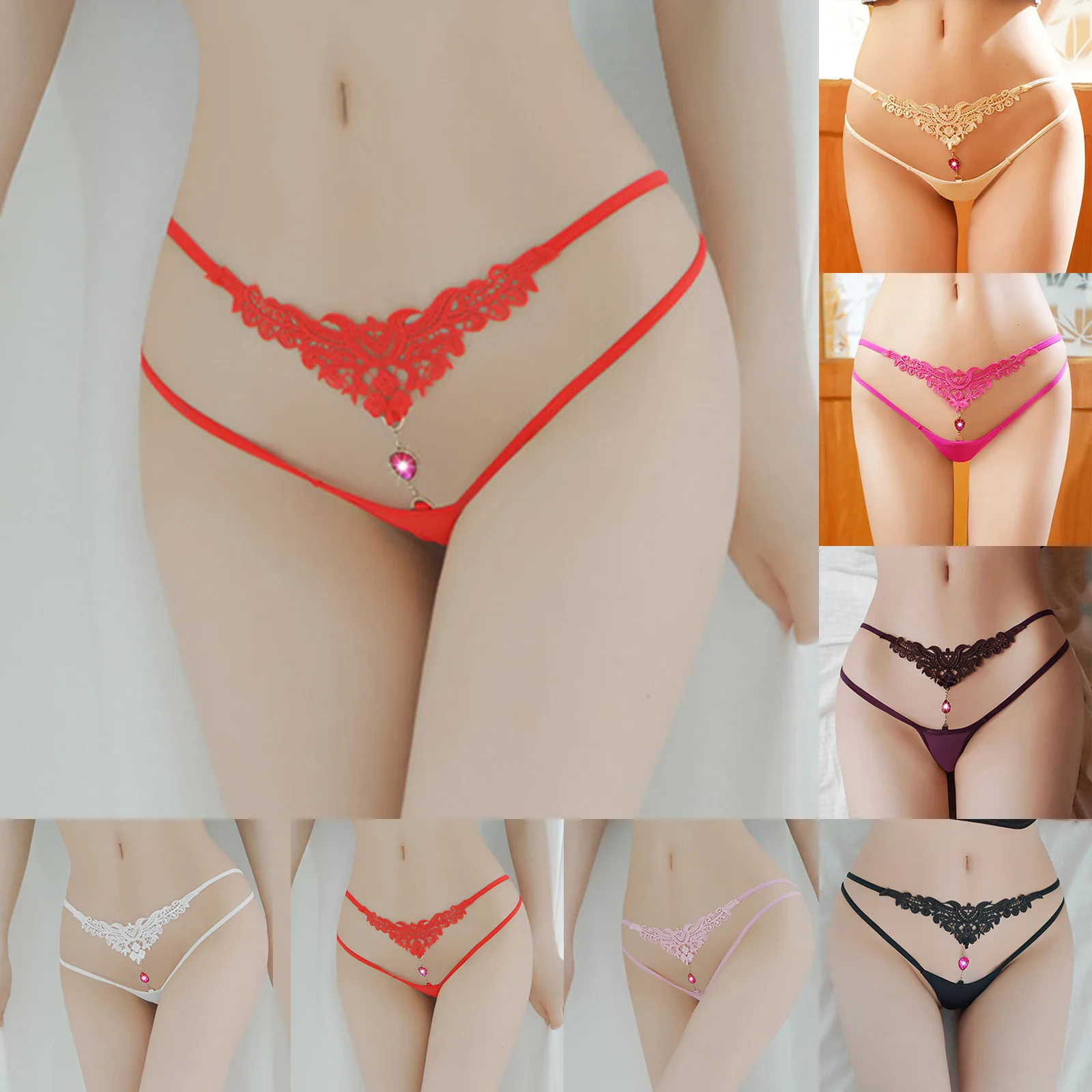 Женское нижнее белье, стринги с бисером, кружевные трусики с вышивк...