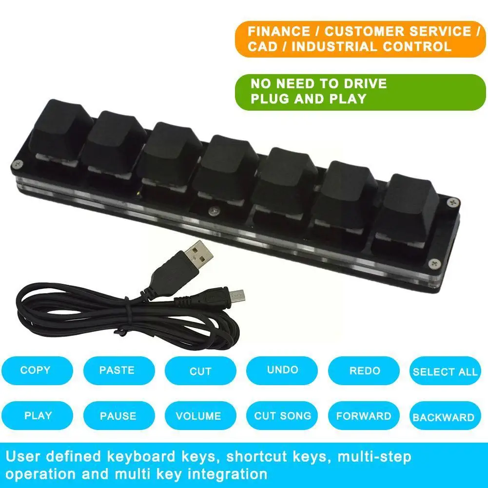 HID стандартная клавиатура, подключи и работай без драйвера.Эта клавиатура поддерживает несколько режимов работы.Каждая кнопка может быть установлена в другой режим функции, не влияя друг на друга.Функция кнопки может быть установлена самостоятельно, есть специальная программа настройки, и настройка может быть повторена.Встроенная память, настройки сохранены на клавиатуре, и нет необходимости устанавливать снова для замены устройства.Поддержка Windows, Linux, MacOS, Android, Raspberry Pi и т. д.Поддерживаемые режимы функции:Режим по умолчанию: То есть режим клавиатуры.Режим мыши: переместите курсор/Нажмите кнопку мыши.Мультимедийное управление: управление воспроизведением мультимедиа и т. Д.Двухступенчатая работа: Нажмите и поднимите, чтобы выполнять различные операции соответственно.Светодиодный контроль: вы можете управлять клавиатурой светодиодный режим в указанном состоянии.Игровой контроллер: он может быть установлен в качестве кнопок игровой ручки и т. Д.Пароль с одним ключом: Ввод заданного пароля с одним ключом.Посылка включает в себя:1 * Клавиатура