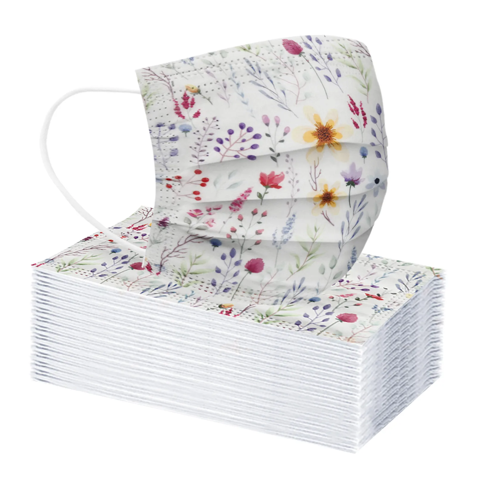 Маска для лица одноразовая Нетканая с цветочным принтом, 1020304050100 шт.