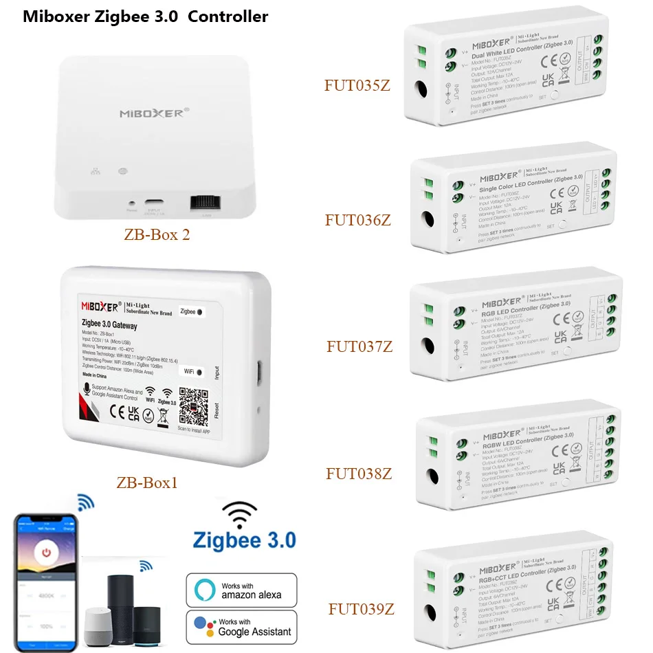 Miboxer Zigbee 3,0 двойной белый одноцветный RGB RGBW RGB + CCT Светодиодная лента Contoller ZB-Box1 ZB-Box2 APP контроллер шлюза