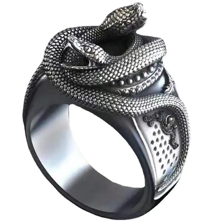 Мужское металлическое кольцо в виде змеи, готическое кольцо в антич...