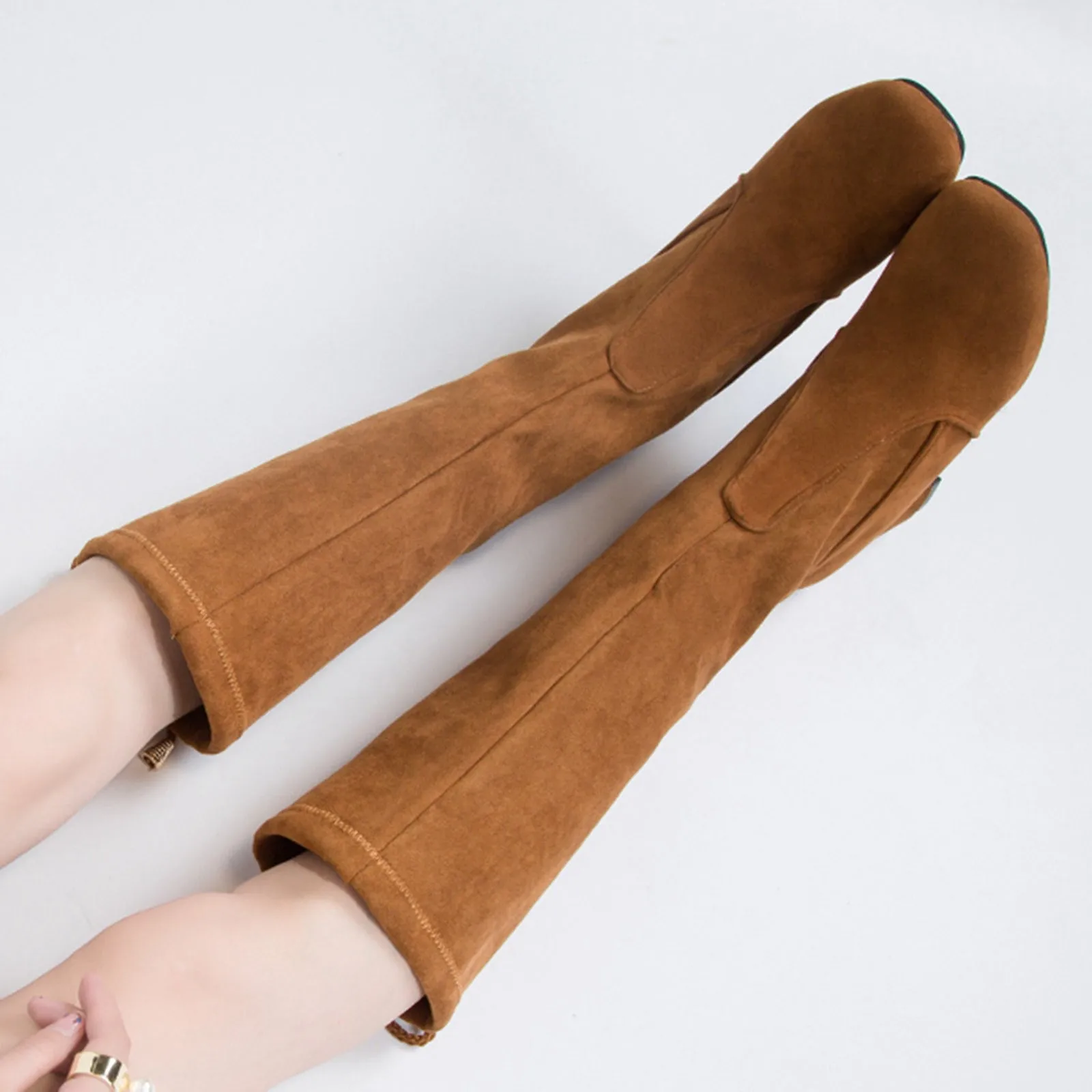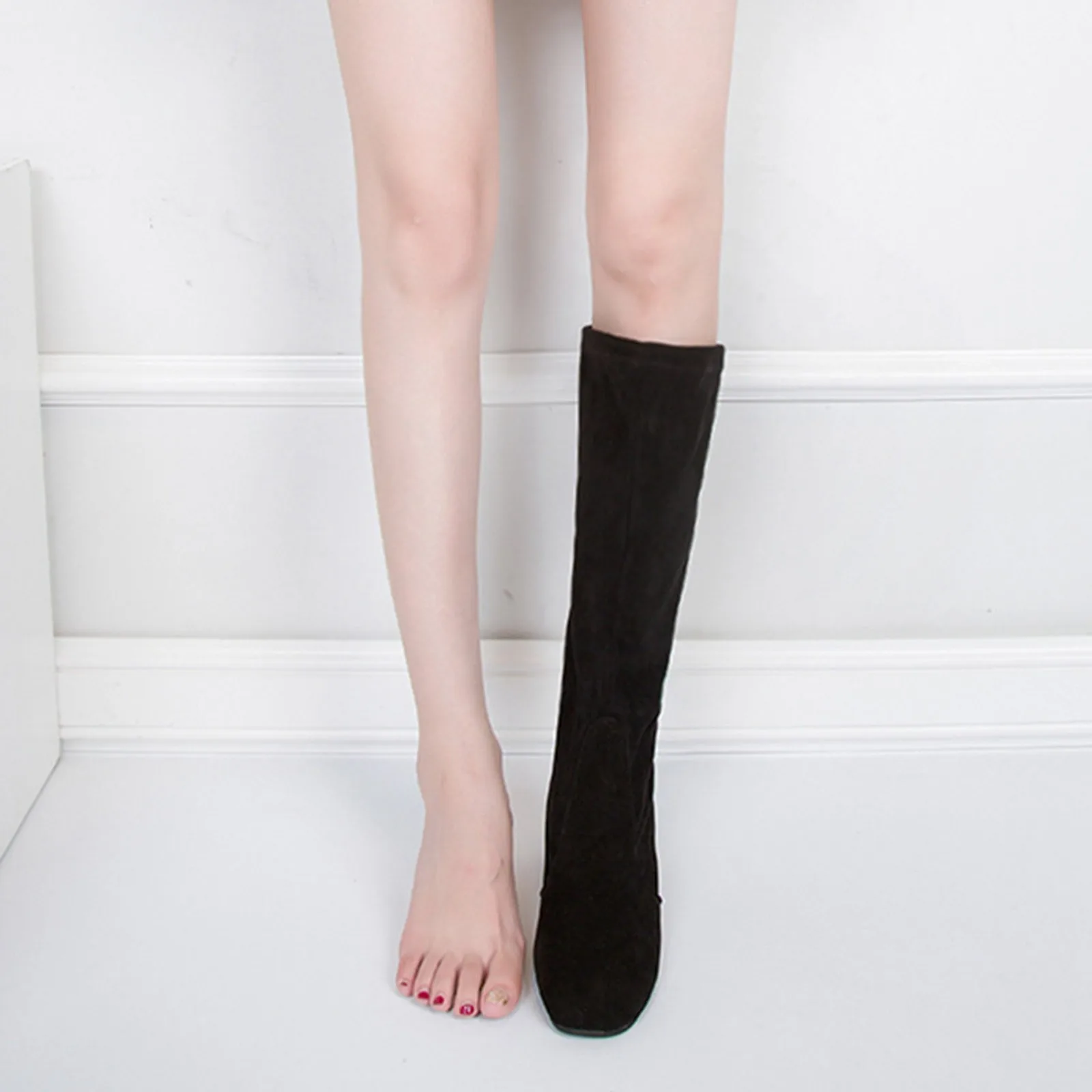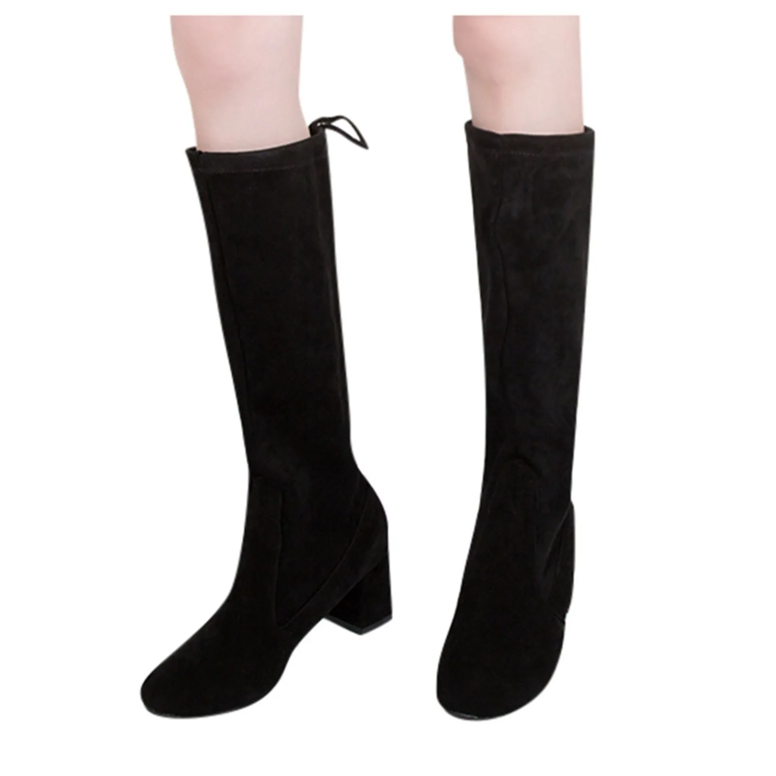 Женские модные повседневные однотонные высокие сапоги до колена без застежки обувь на высоком каблуке