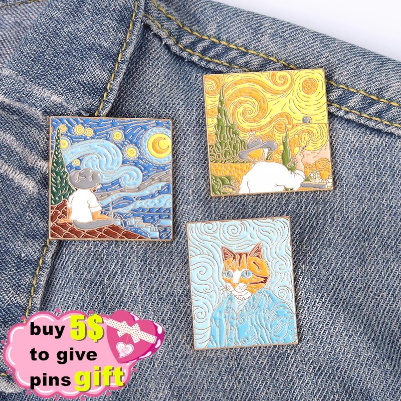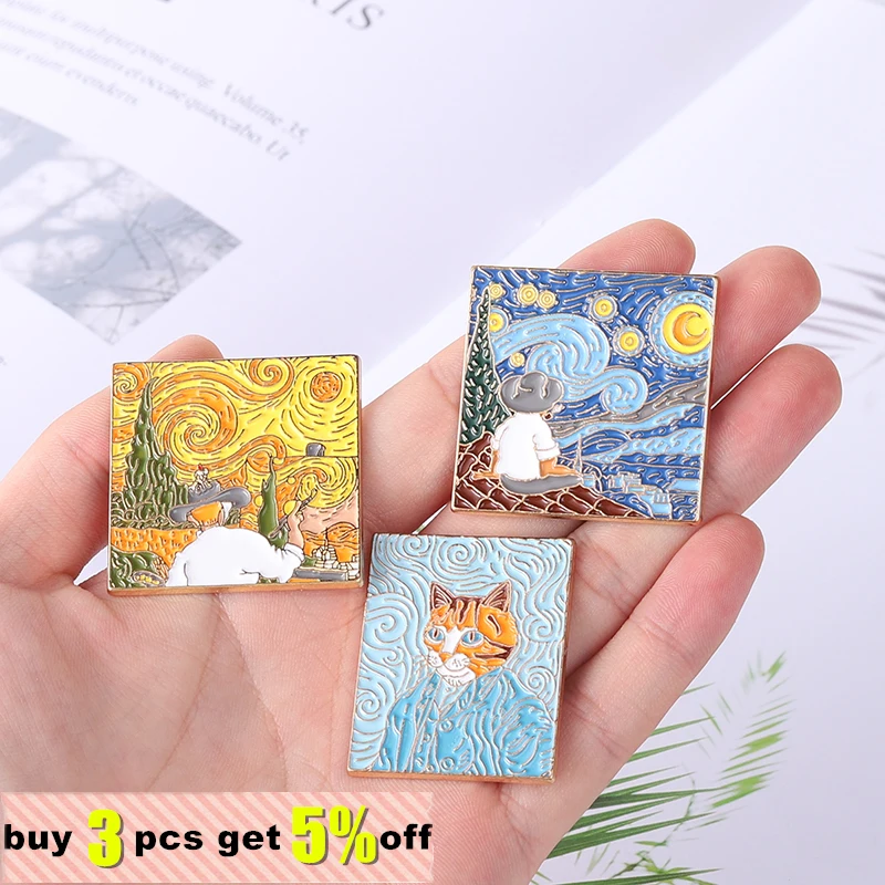 Оптовая продажа, адаптация, знаменитая картина маслом, эмалевые булавки, индивидуальный рисунок Ван Гога, художественный значок, мультяшный подарок для друзей
