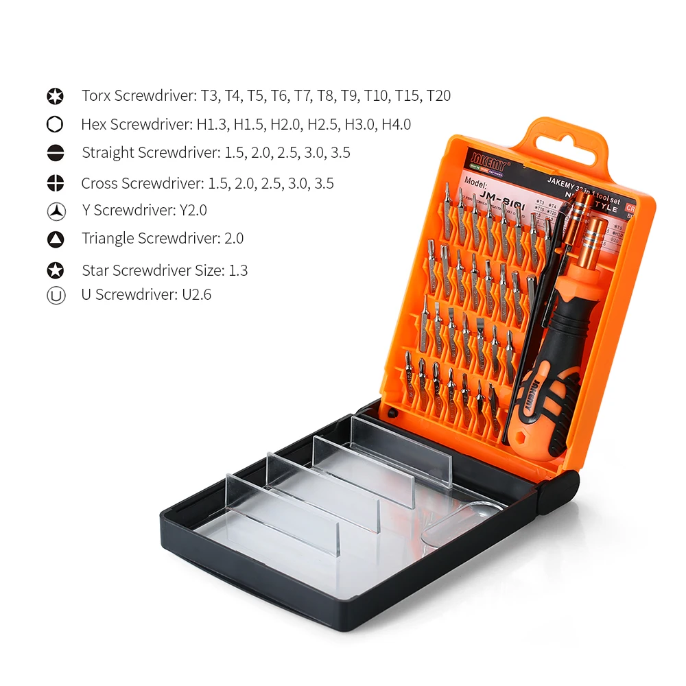 Если вы ищете набор эффективной и надежной отвертки, это именно то, что вы ищете. Этот набор из 33 в 1 прецизионных магнитных бит отверток имеет 30 головок отверток и 8 категорий для кварцевых часов, камер, радиоприемников, компьютеров, мобильных телефонов и т. д. Идеально подходит для самостоятельной сборки, разборки точного оборудования, семейного использования и т. д.Особенности:Нескользящая эргономичная ручка, более удобная и удобная для использования.Включая 30 шт. взаимозаменяемая отвертка, может удовлетворить различные требования к техническому обслуживанию.8 категорий отверток для кварцевых часов, камер, радиоприемников, компьютеров, мобильных телефонов и т. Д.Магнитные наконечники легко и надежно удерживают винты. Высокая твердость и высокая прочность.Компактный и легкий, все инструменты хорошо защищены пластиковым чехлом, удобно носить с собой.Характеристики:Материал: 6150 CR-V (хром-ванадиевая сталь) + ABSРазмер отвертки: около 4*28 ммРазмер удлинителя: h4x60 ммДлина пинцета: 115 ммМодель отверток:Размер отвертки Torx: T3, T4, T5, T6, T7, T8, T9, T10, T15, T20Размер шестигранной отвертки: H1.3, H1.5, H2.0, H2.5, H3.0, H4.0Размер крестообразной отвертки: 1,5, 2,0, 2,5, 3,0, 3,5Размер Прямой отвертки: 1,5, 2,0, 2,5, 3,0, 3,5Размер отвертки Y: Y2.0Размер треугольной отвертки: 2,0Размер отвертки: 0,8U размер отвертки: U2.6Размер ручки: 105*28 ммПодходит для использования: для смартфонов, игровых приставок, планшетов, ПК, электроники, компьютеров, ремонта часов, ремонта очков, ремонта ювелирных изделий и т. д.Вес посылка: 225 г/7,95 унцийПосылка Размеры: 15,5*10,5*3,2 см/6,1*4,1 * 1.3inПосылка:30 * прецизионные отвертки1 * пинцет1 * ручка1 * удлиненный стержень1 * коробка для хранения
