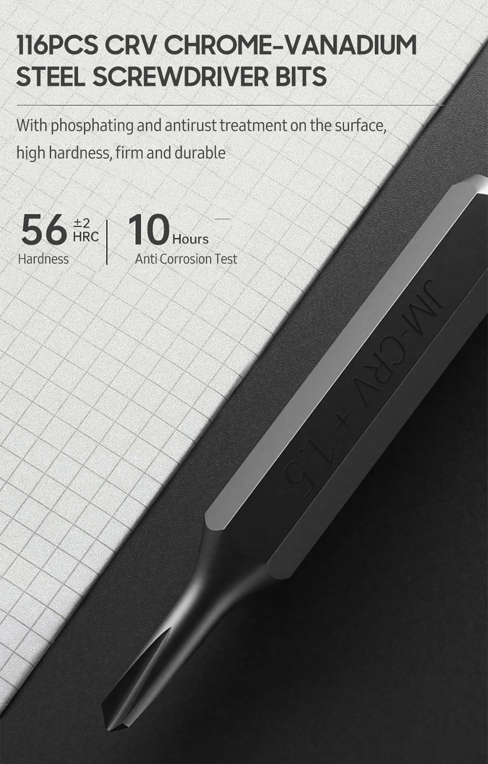Особенности:Набор отверток 145 в 1: Биты отверток, розетки, пружины, присоска, пинцет и т. Д., набор инструментов имеет все возможные вложения, которые вы могли бы когда-либо нуждаться в обслуживании смартфонов, ноутбук и другие электронные продукты.116 шт. отверток: в том числе шестигранные, поперечные головки, торксы, шлицевые, пятиконечные, квадратные и многое другое.CRV хром-ванадиевая сталь отвертка биты: с фосфатированием и антикоррозийной обработкой на поверхности, твердая и высокая твердость.Гибкий вал и намагничиватель: мягкий вал для гибкого сгибания под углом по мере необходимости. И магнетизатор является бонусом, когда им нужно больше магнетизма.Эргономичная отвертка: головка отвертки имеет магнитное крепление для фиксации, ручка с противоскользящим дизайном и вращающаяся на 360 ° Крышка для удобной работы.Чехол для хранения: АБС-пластик высокой плотности чехол с канавкой предназначен для крепко держать биты и другие аксессуары, они не будут выпадать из коробки.Характеристики:Материал: CRVРазмер изделия: 180*115*45 мм/7,09*4,53*1,77 дюймаВес изделия: 702 г/24,76 унцийВес посылка: 715 г/25,22 унцийПосылка Размеры: 18,5*10,5*4,5 см/7,28*4,13 * 4.77inУпаковочный лист:116 * Биты отвертки12 * розетка5 * треугольное весло4 * S2 45 мм длинные Биты2 * Инструмент для подделки1 * Присоска1 * пинцет1 * намагничиватель1 * гибкий вал1 * ручка1 * коробка аксессуаров1 * чехол