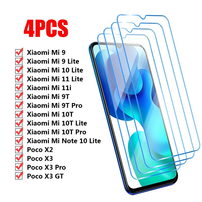 4 шт. прозрачное закаленное стекло для Xiaomi Mi 11 10 9 Lite 10T Lite 10T Pro 9T Pro закаленное стекло для Xiaomi Poco X3 X3 GT X2 M3