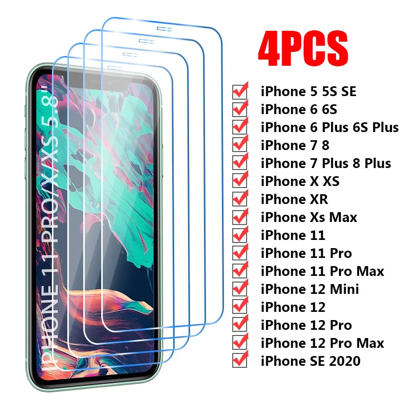 4 шт. HD закаленное стекло для iphone 12 11 Pro max 8 7 6 X XS XR m...
