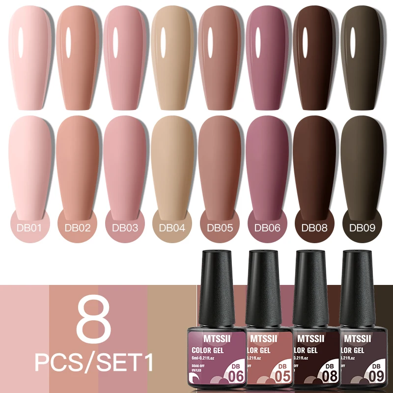 Mtssii 8 шт набор гель-лаков для ногтей 120 цветов Блестящий Полупостоянный Гибридный гель лак основа верхнее покрытие впитывающий УФ светодиодный гель для ногтей