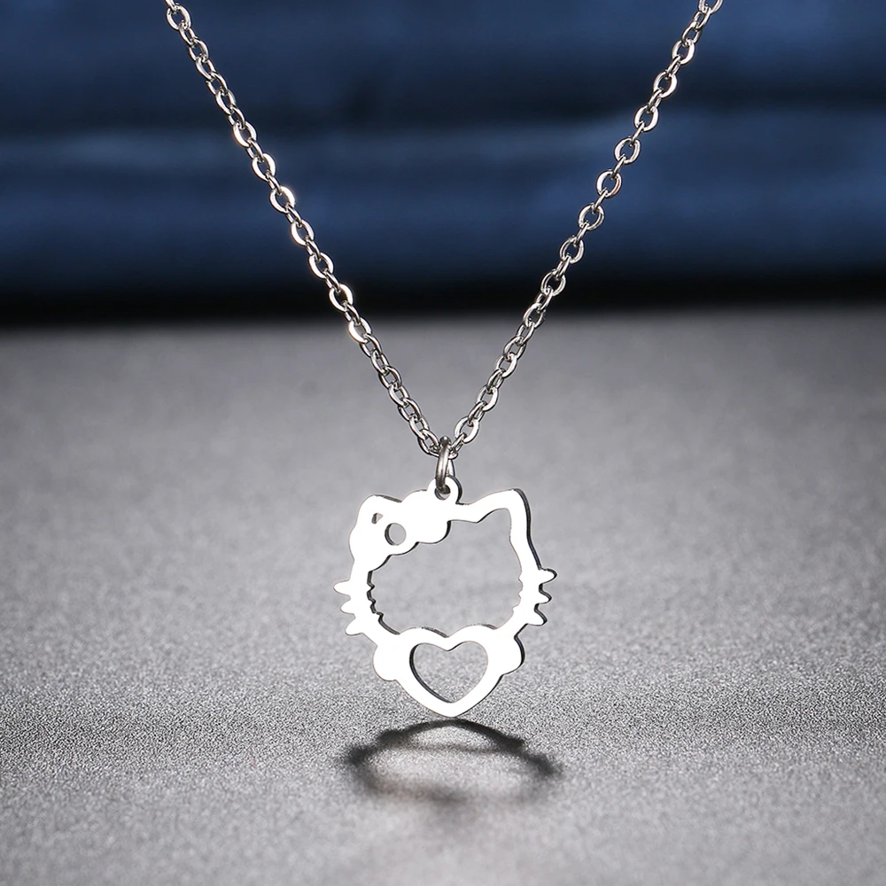 Ожерелья из нержавеющей стали с подвеской в виде котенка и банта, чокер на цепочке, бижутерия, модное ожерелье для женщин, ювелирные изделия, свадебные подарки, новинка