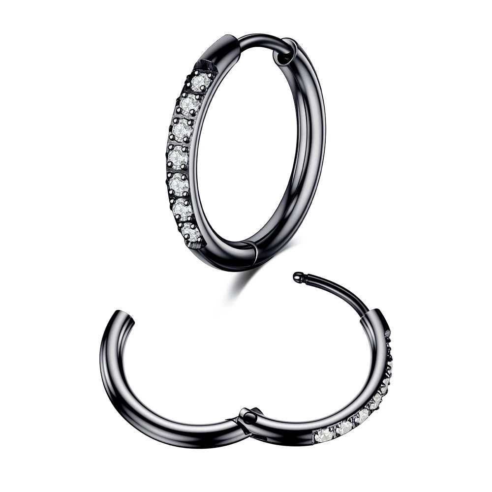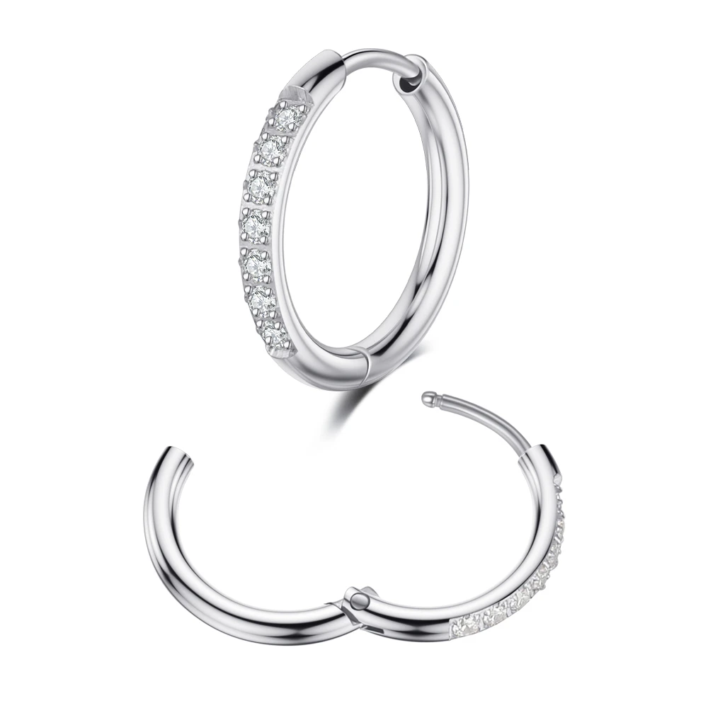 Серьги-кольца Huggie с фианитами, круглые украшения для прокола уха, Козелка, завитка ушной раковины, стальная перегородка для носа, 2 шт., 7 дюймов, 81012 мм