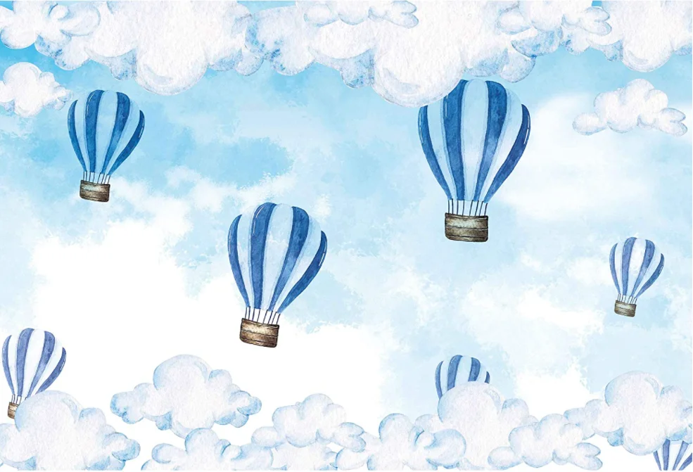Фотофон с изображением горячего воздуха для фотосъемки с голубым небом и белыми облаками для детской вечеринки на день рождения