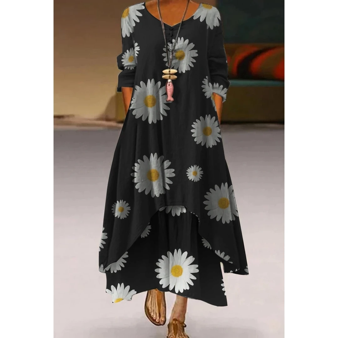 Женское длинное платье с цветочным принтом, Элегантное повседневное...